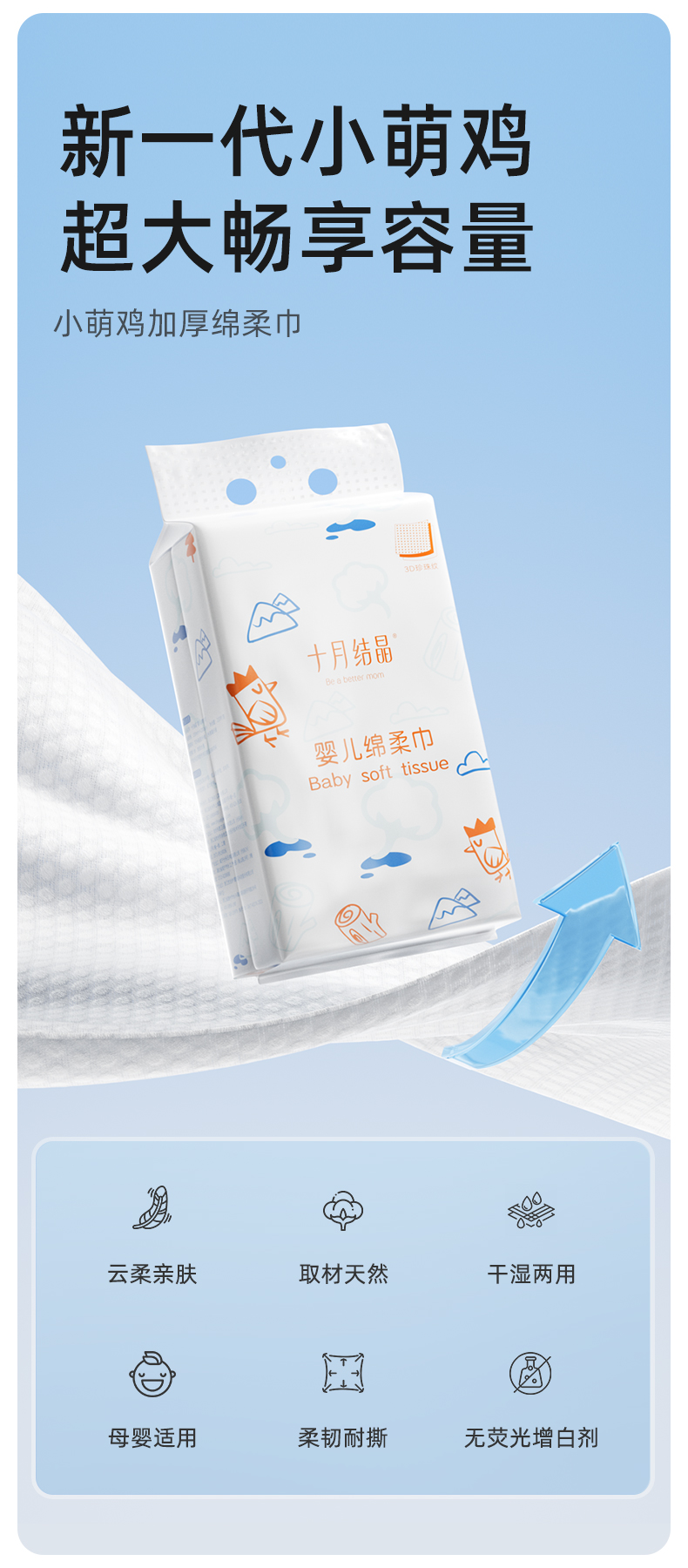 小萌鸡绵柔巾婴儿专用非棉柔巾宝宝悬挂加厚洗脸巾大包装