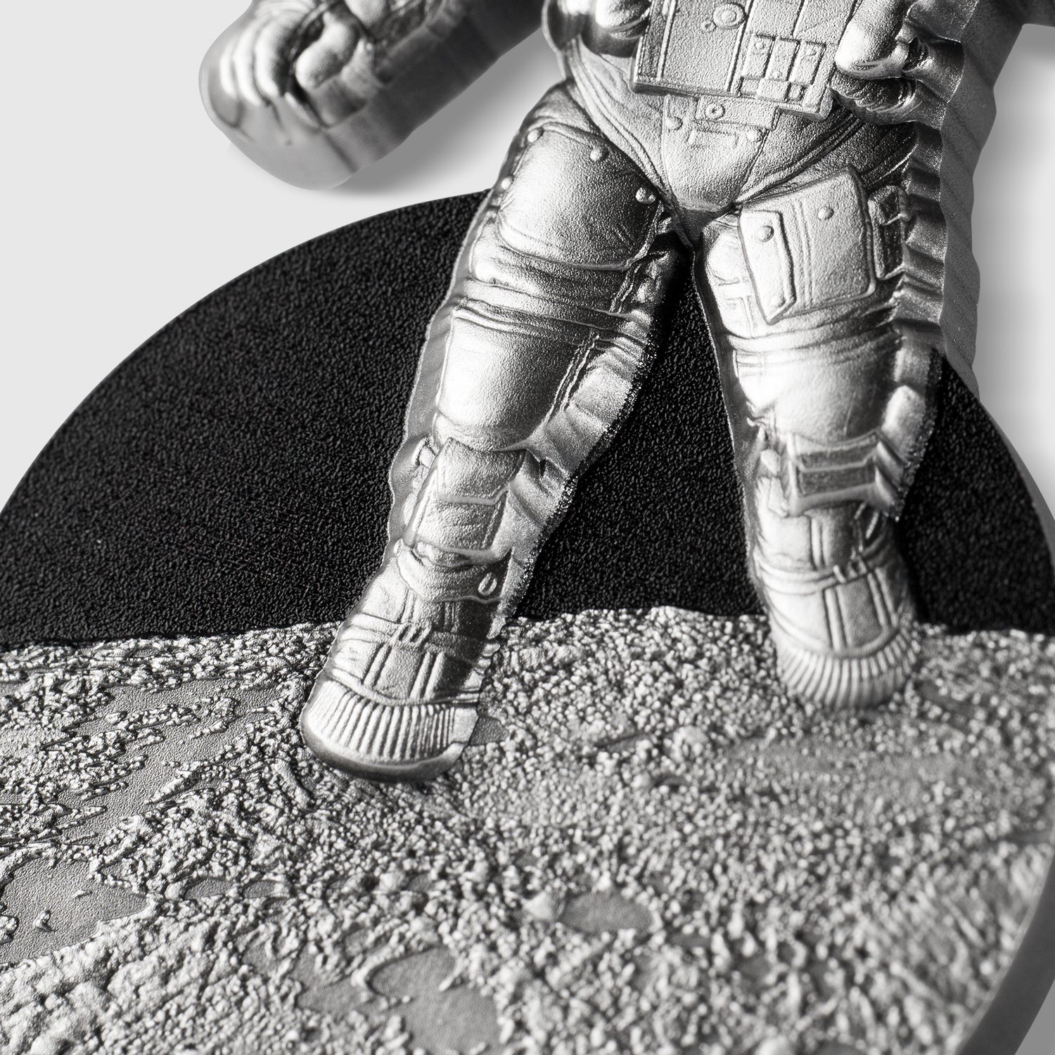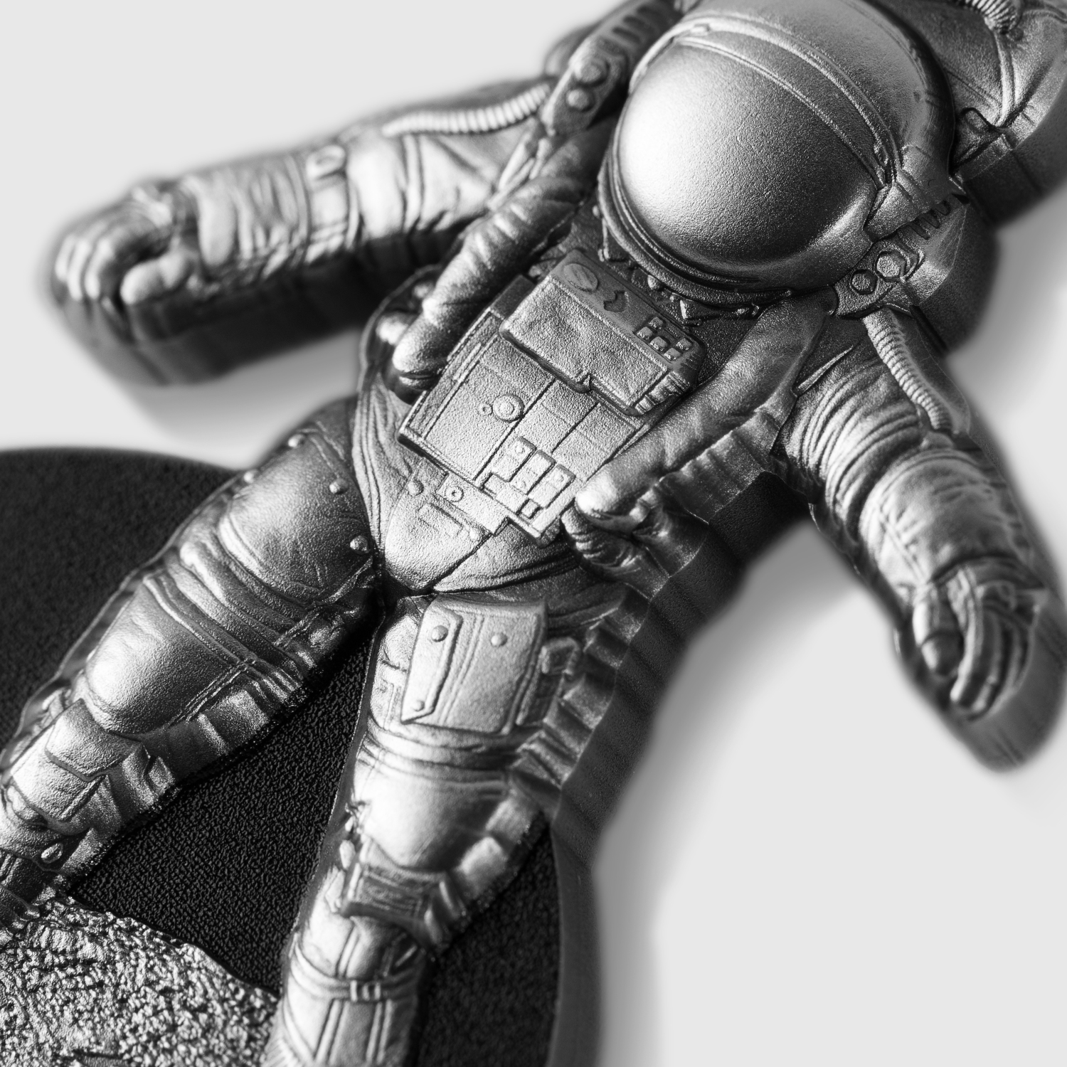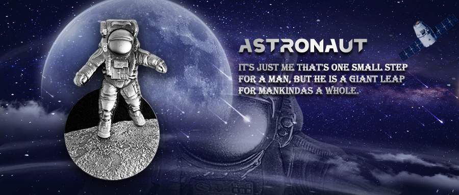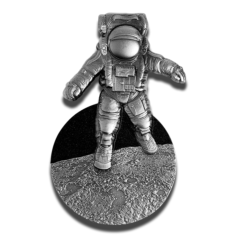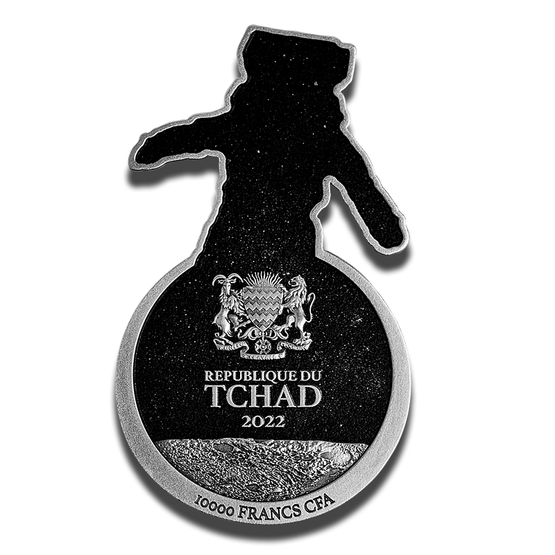 为了纪念人类在太空探索中里程碑式的突破,乍得以人类第一次登陆月球为原型,发行了这枚宇航员纪念币!有黑色宇宙款和仿古版两种样式。