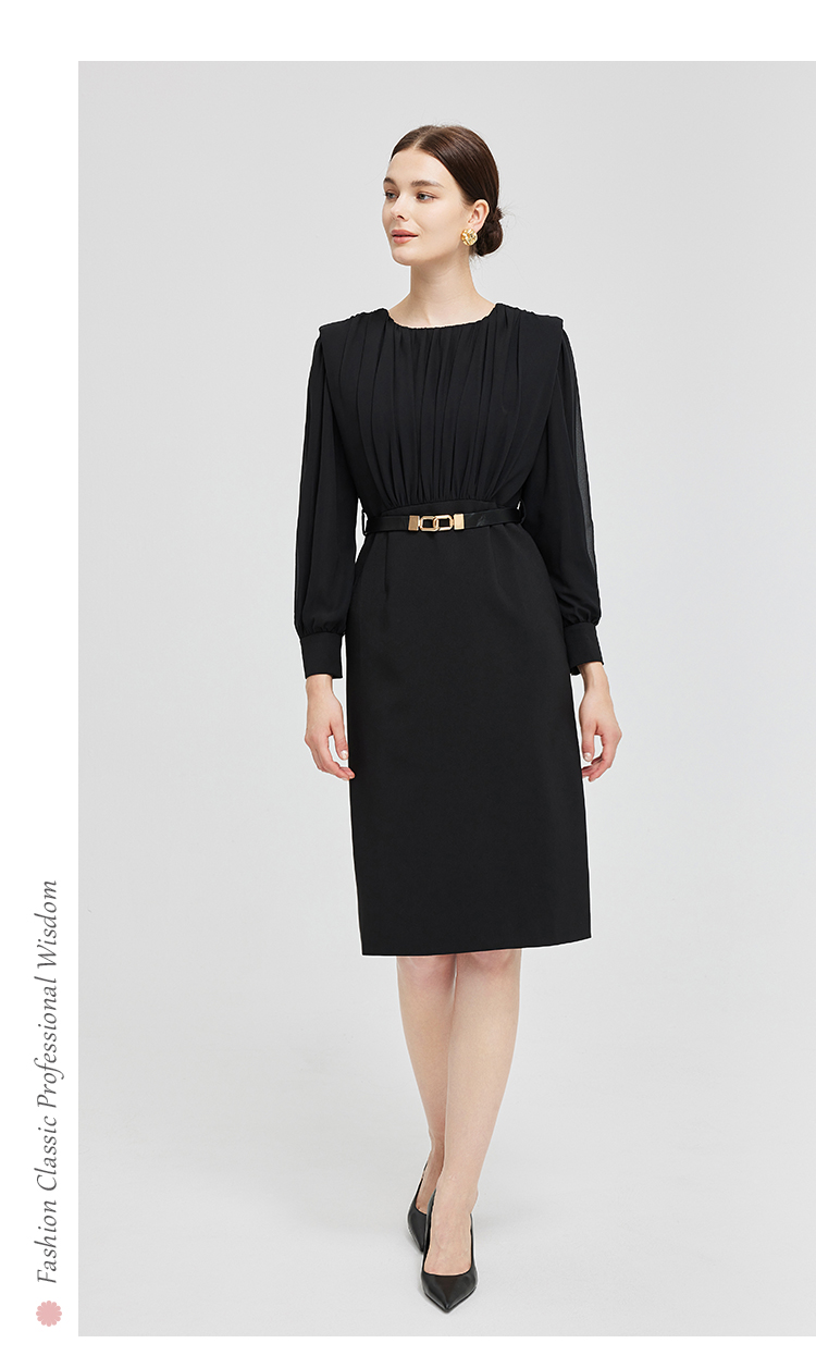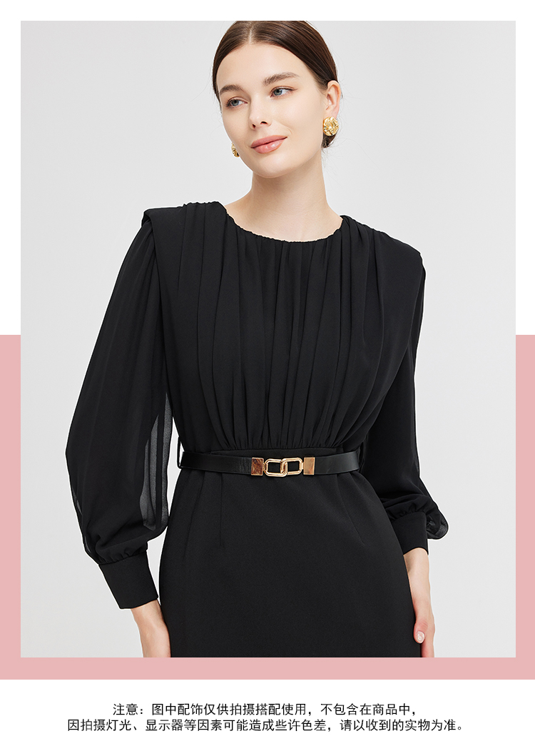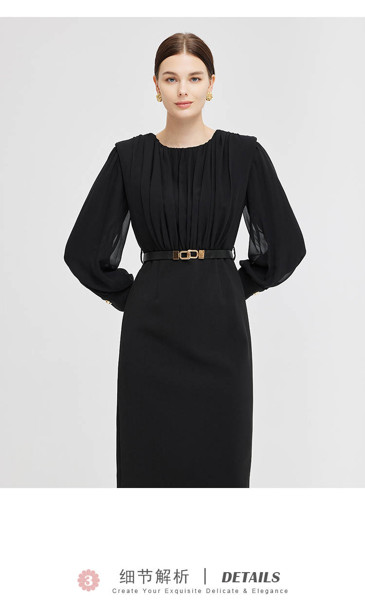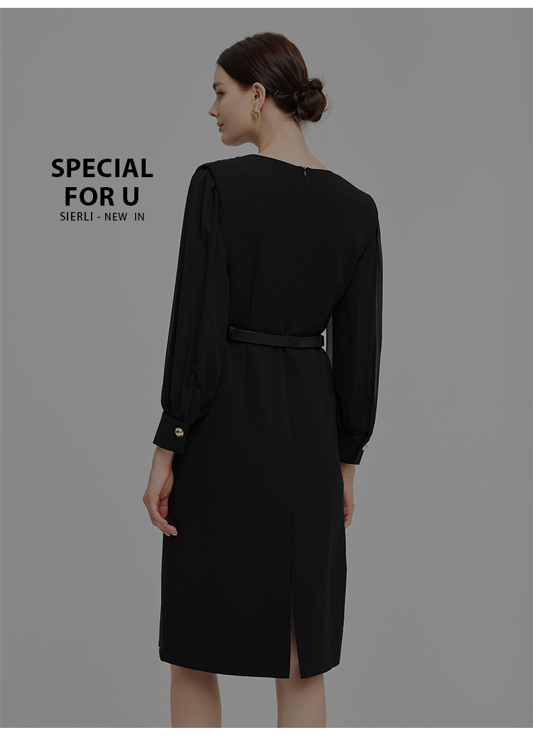NG834斯尔丽2023秋季立新款体袖玻璃纱袖子时尚职场韩版名媛气质连衣裙
