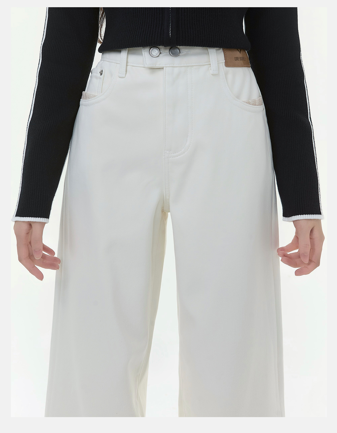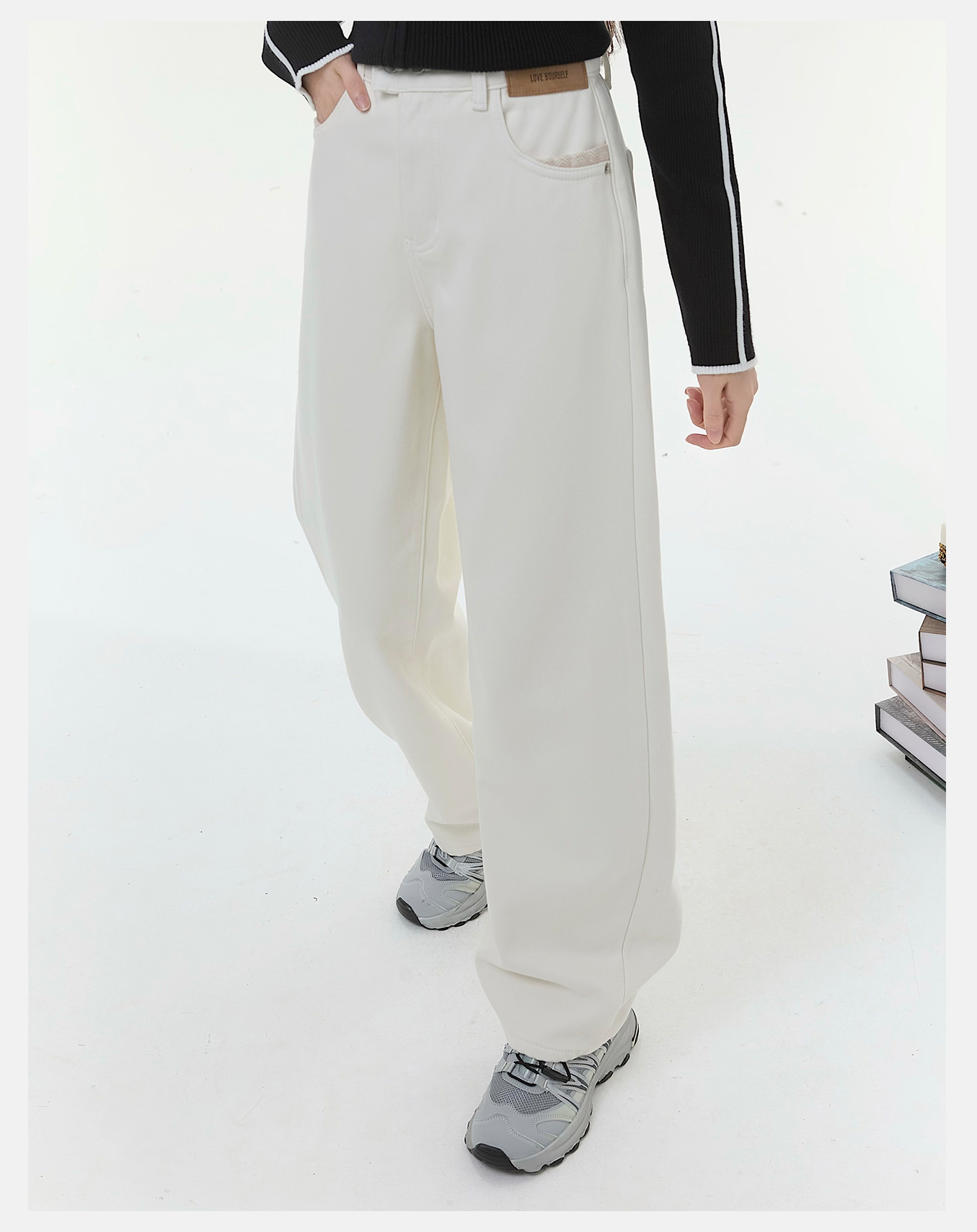 P&X设计师女装2025冬季加绒加厚萝卜型牛仔长裤 825410157 杏色