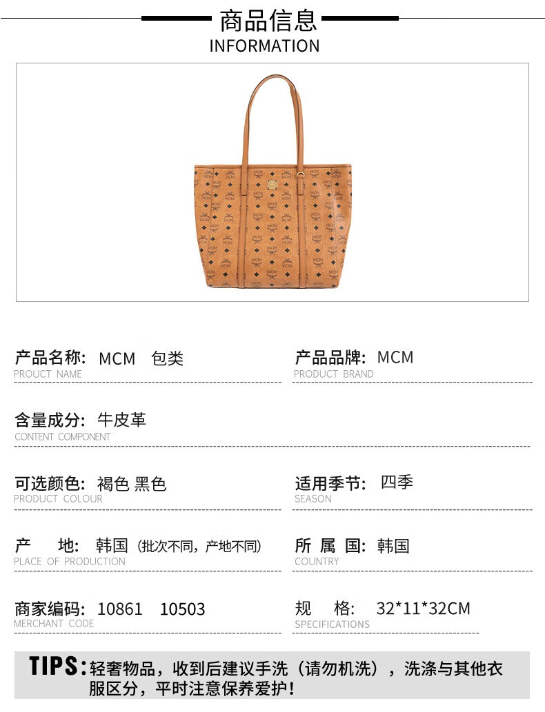 MCM 女士双面印花单肩手提包托特包水桶包
