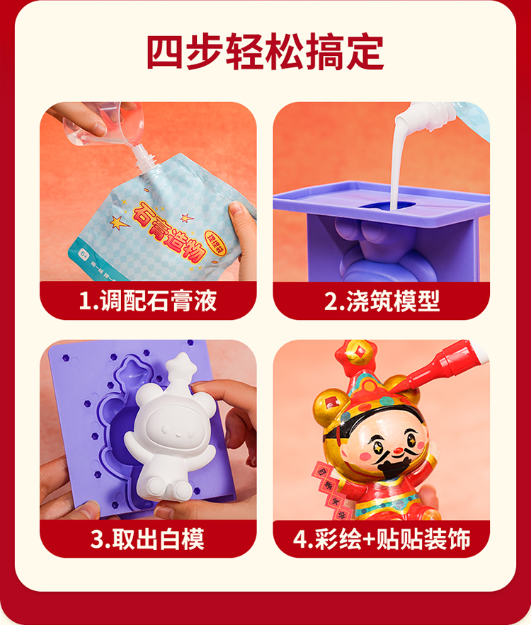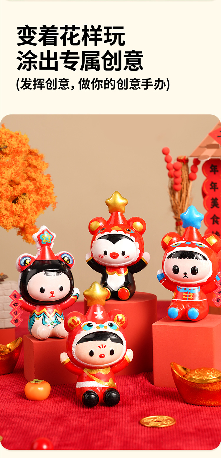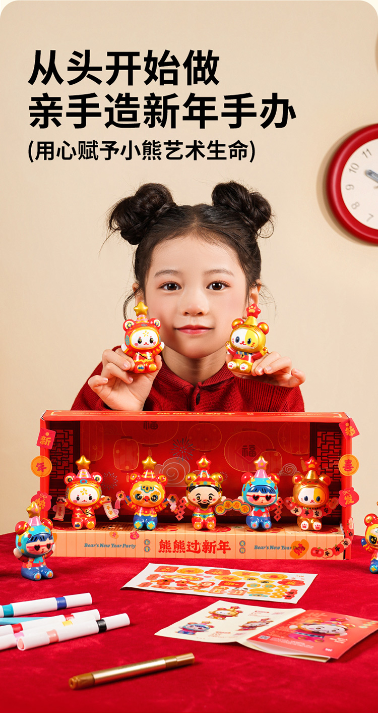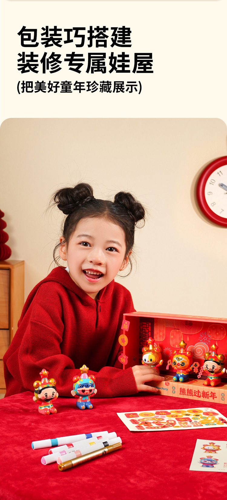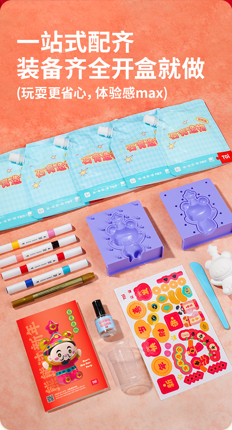春节不打烊 TOI图益石膏涂色娃娃儿童2025新年涂色石膏小熊手工涂鸦彩绘礼物