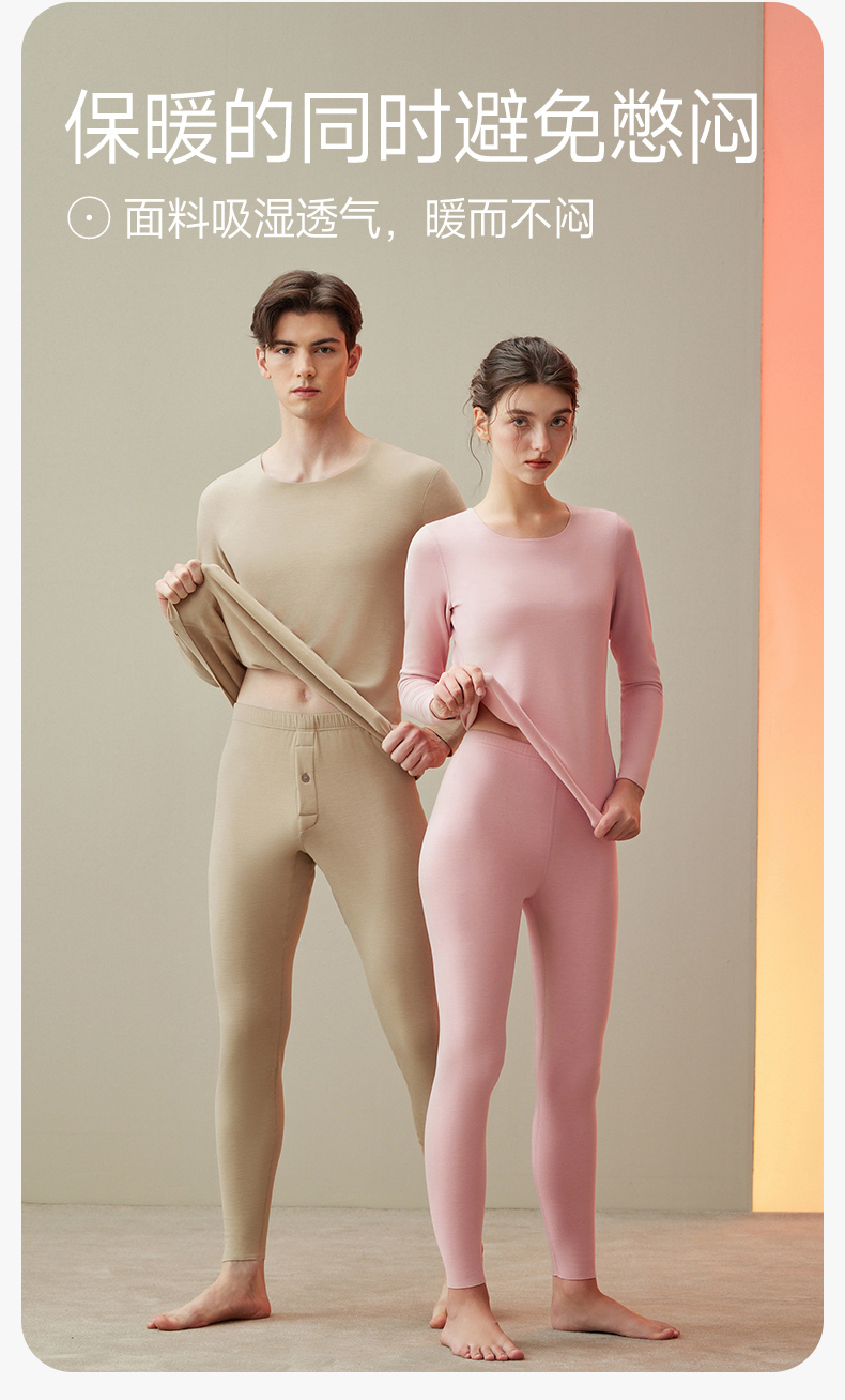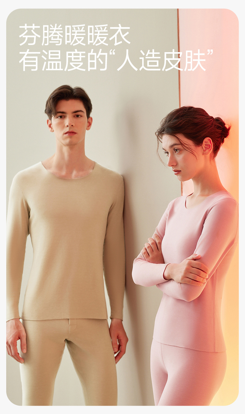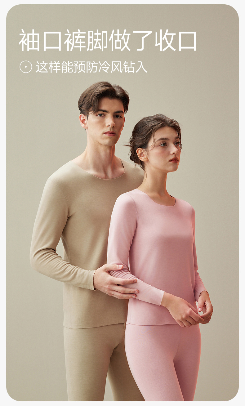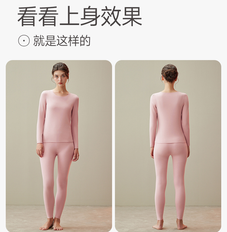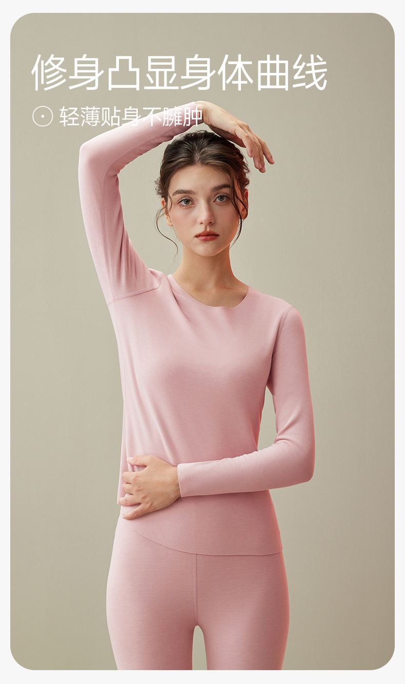 芬腾秋冬保暖内衣秋衣秋裤女士套装新款圆领修身男冬天内穿打底衫