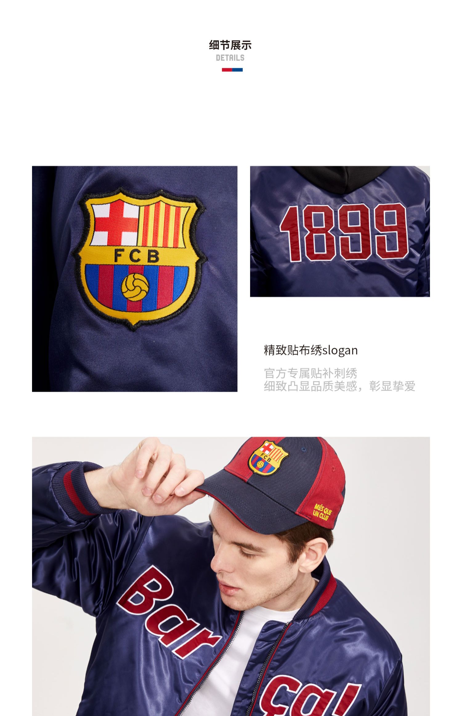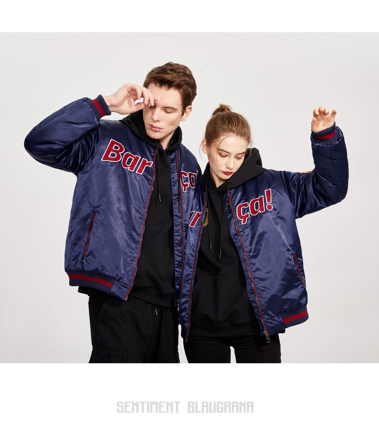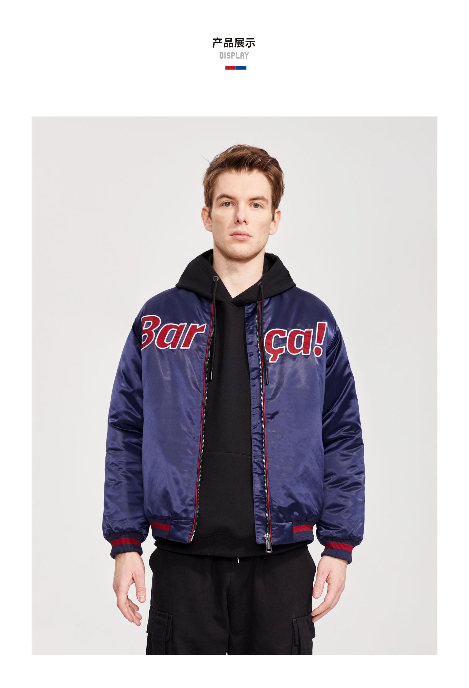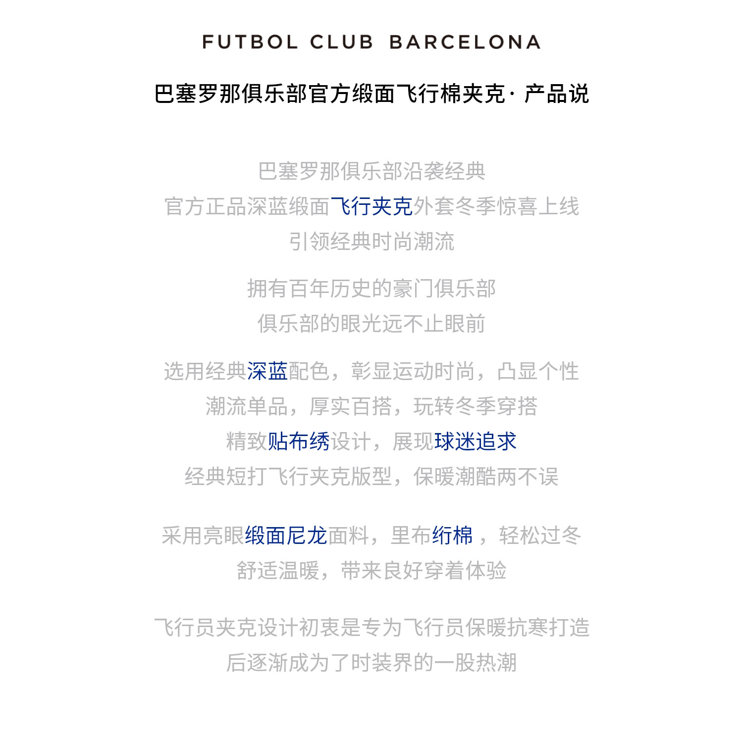 巴塞罗那官方商品丨巴萨新款缎面复古飞行夹克外套棉服加厚棒球服