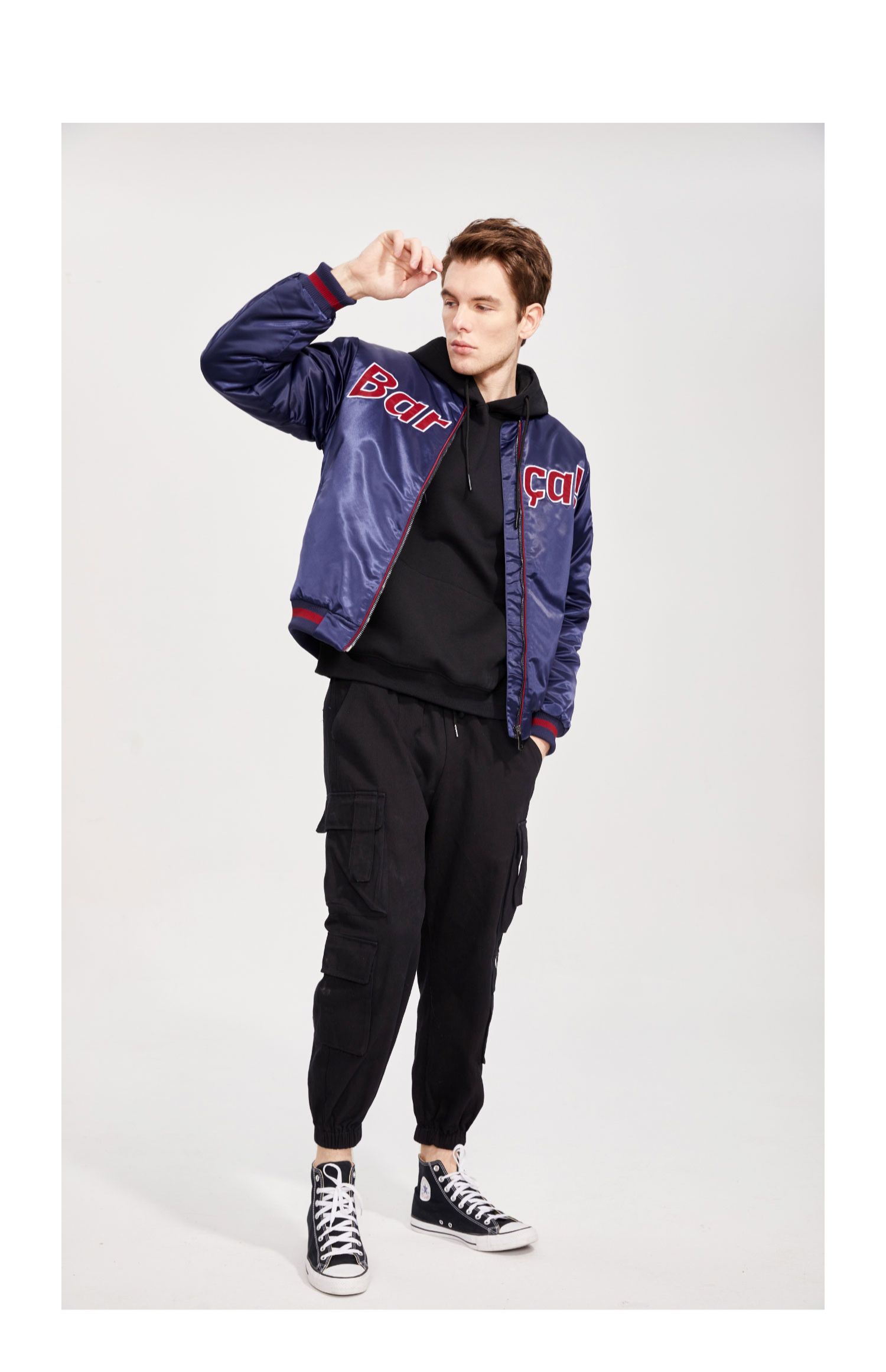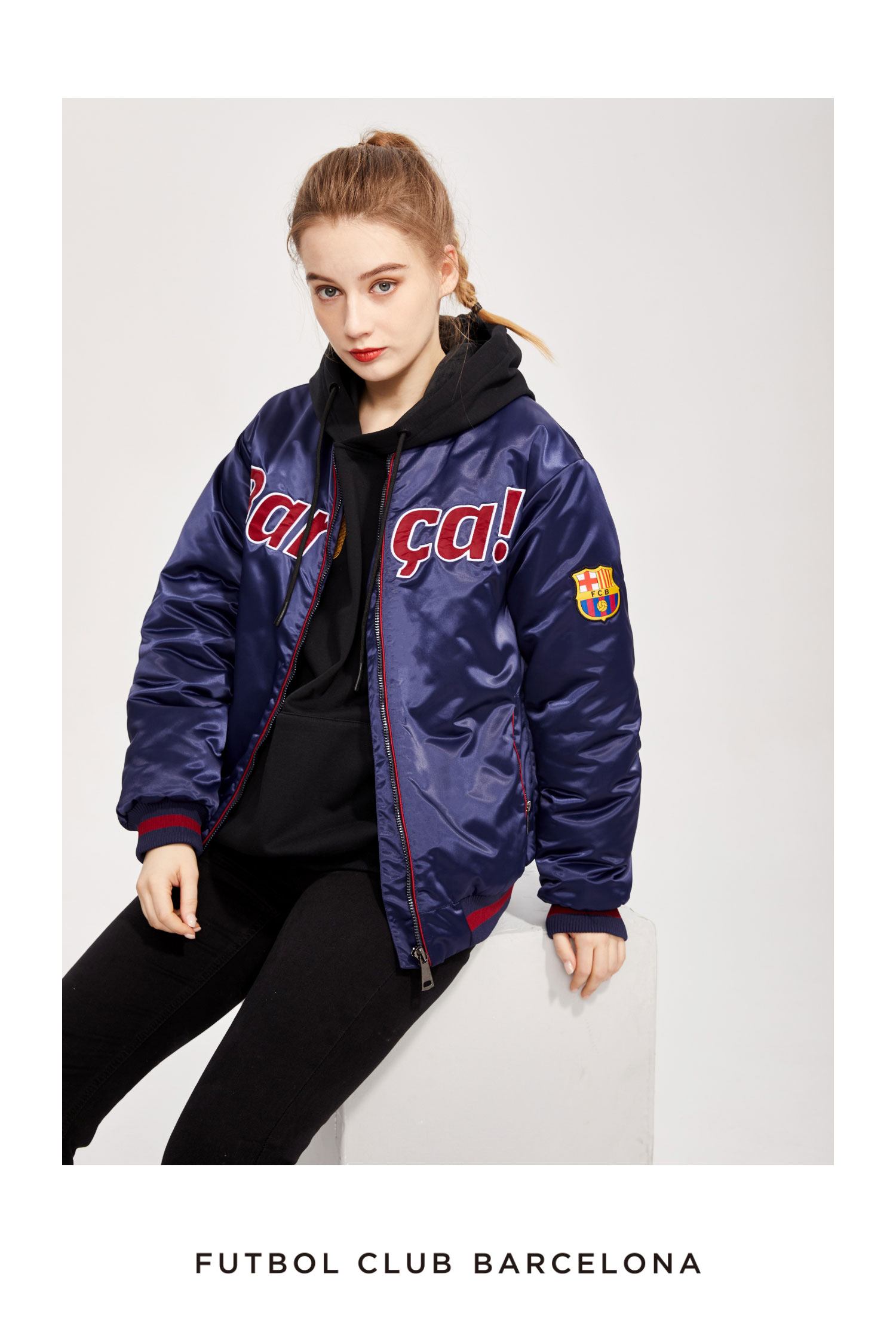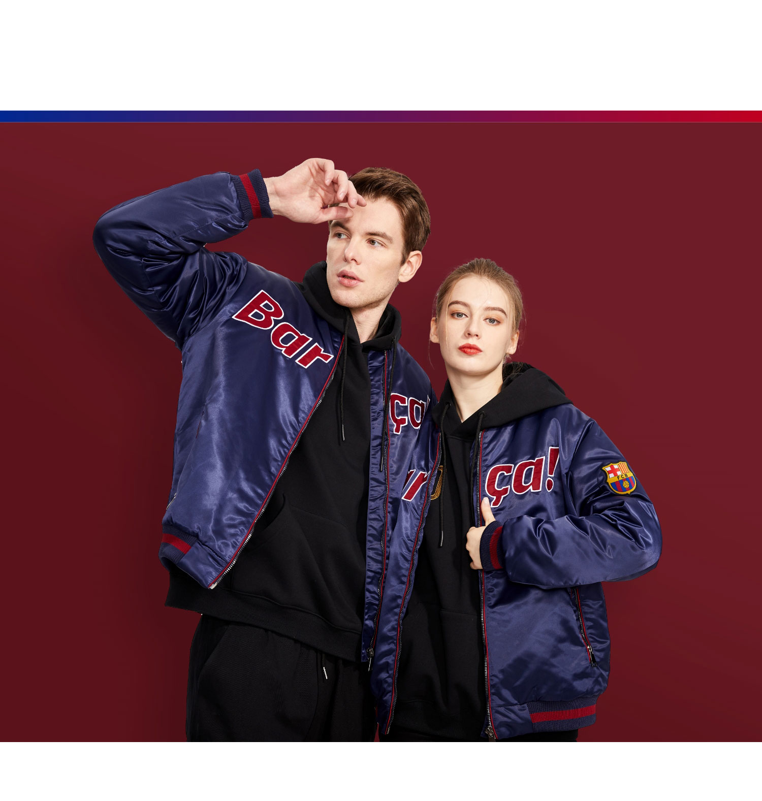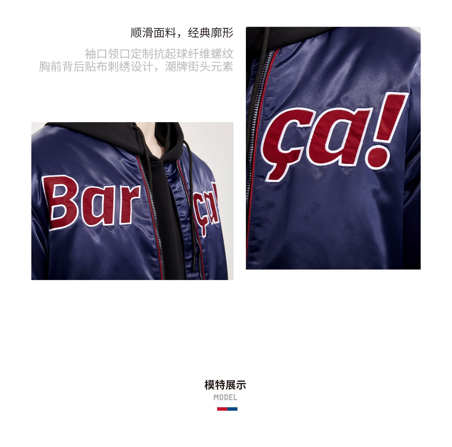 巴塞罗那官方商品丨巴萨新款缎面复古飞行夹克外套棉服加厚棒球服