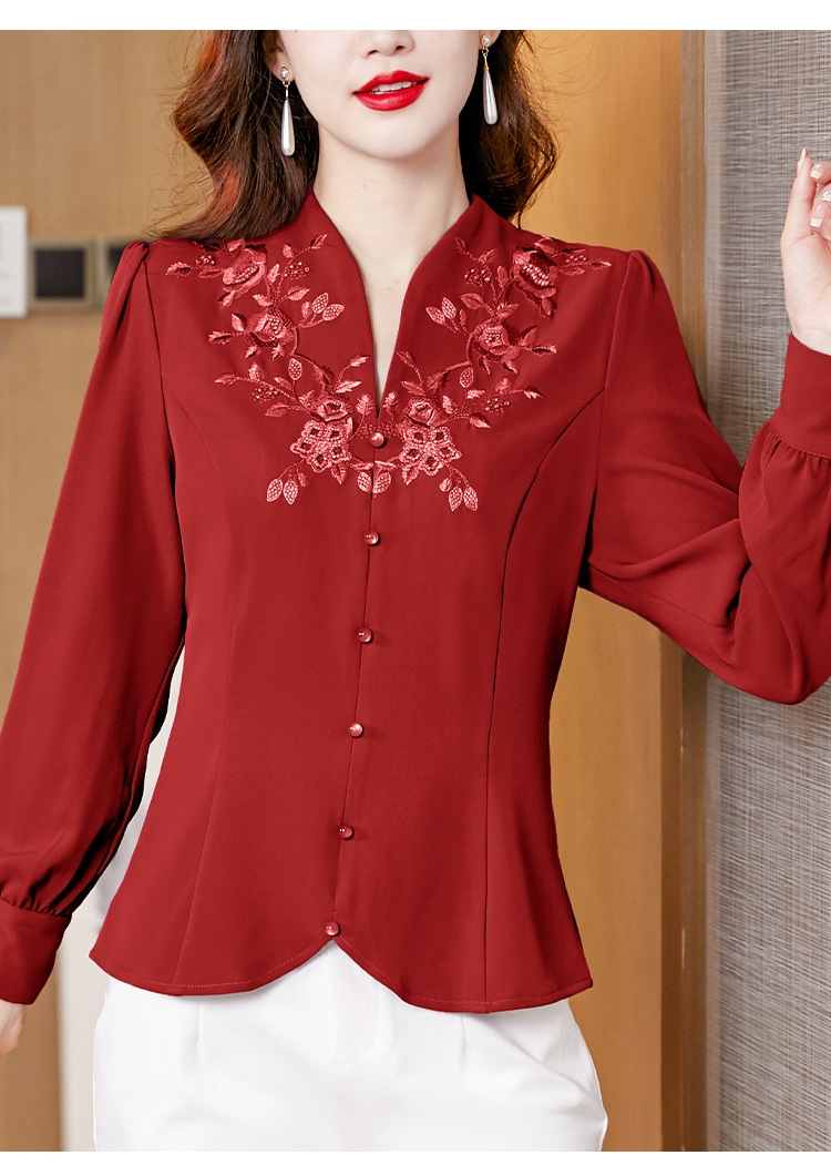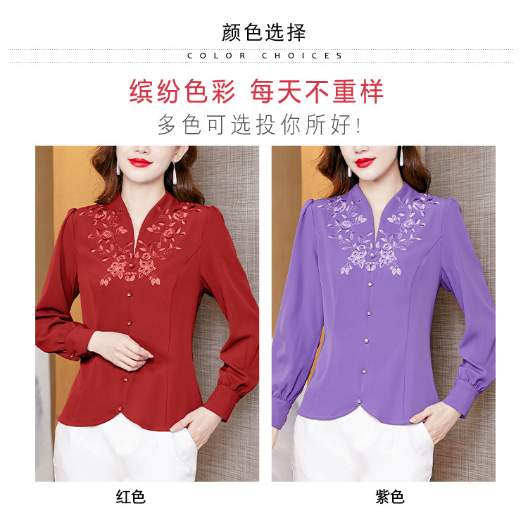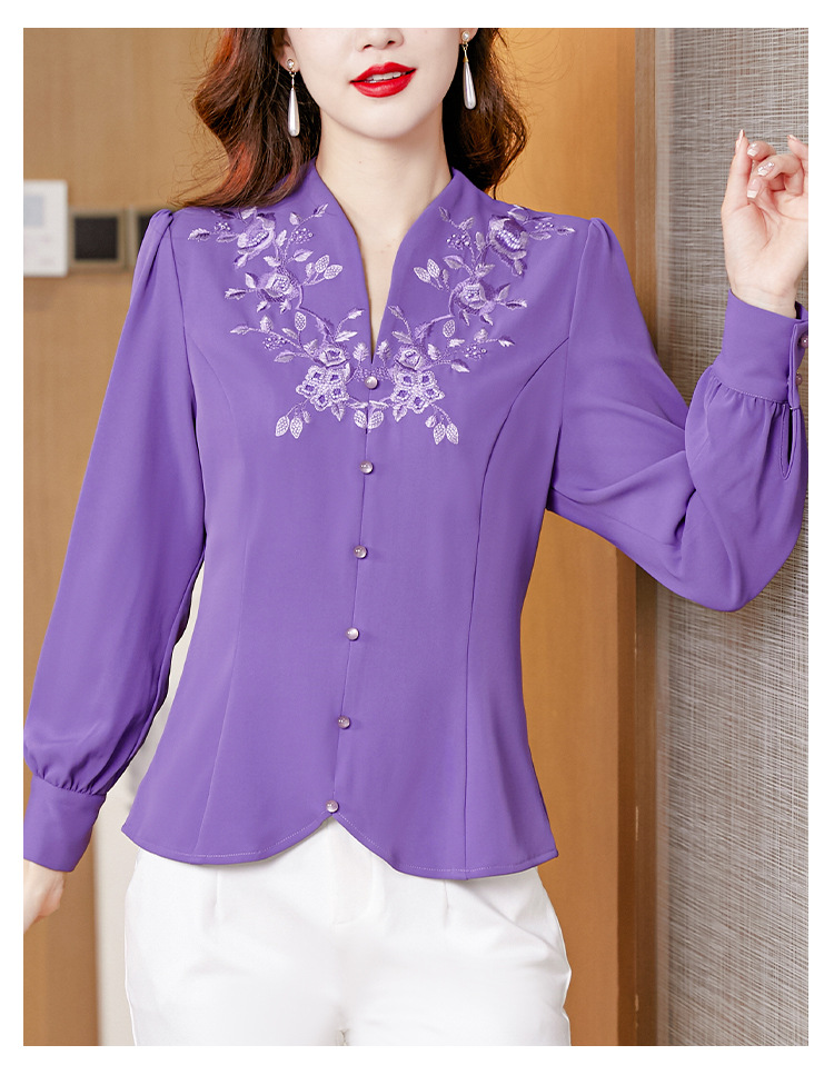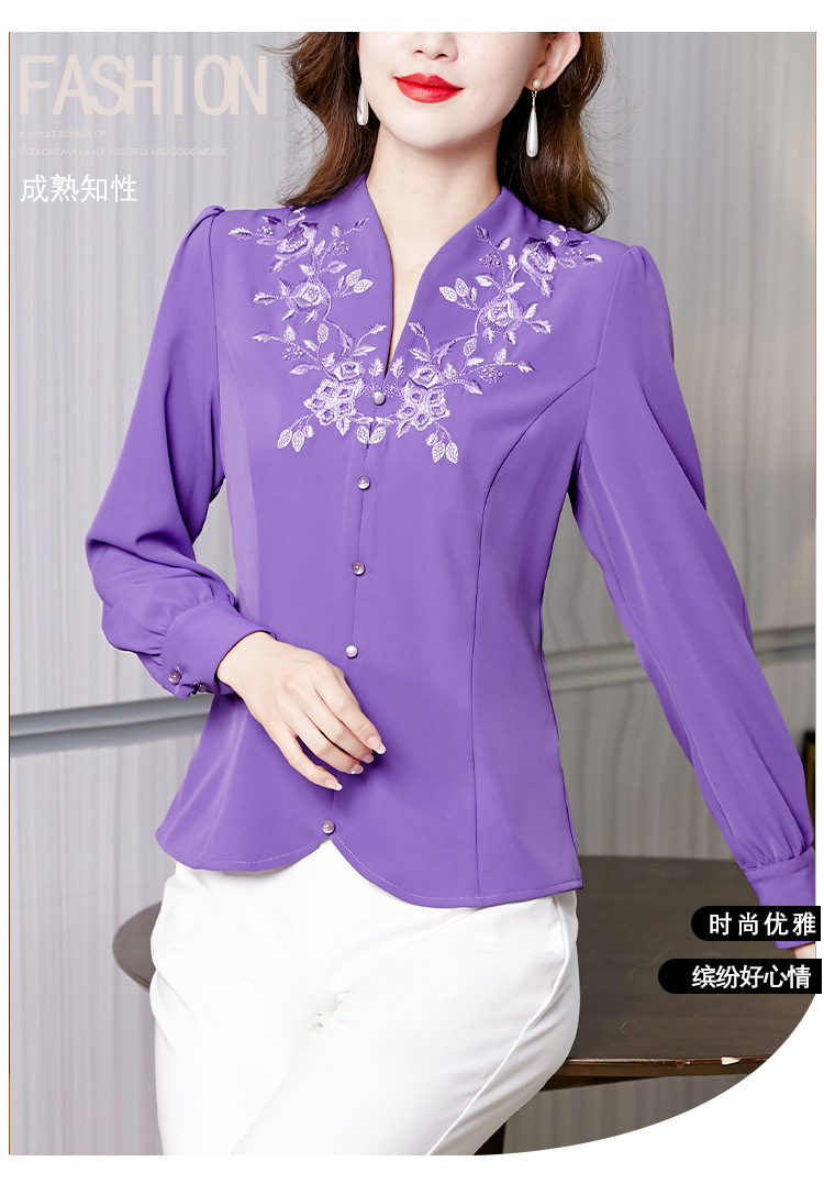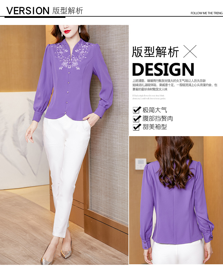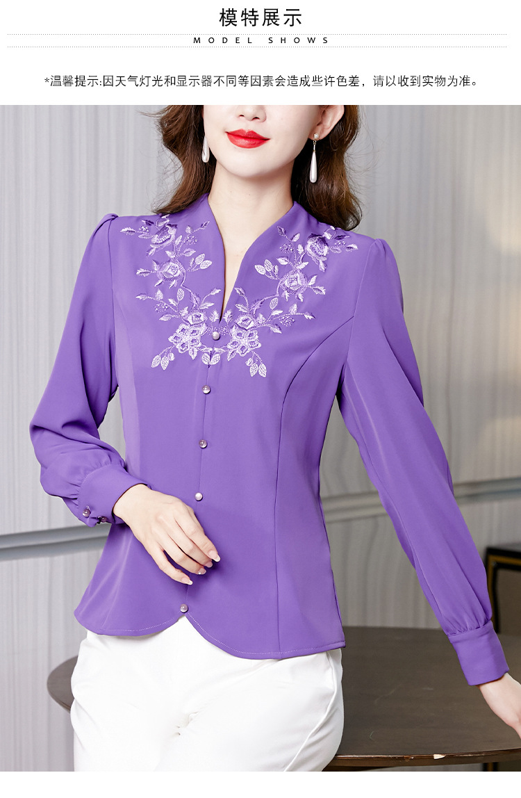 设计感绣花中式刺绣v领时尚显瘦衬衣职业气质KQL-A83N6812