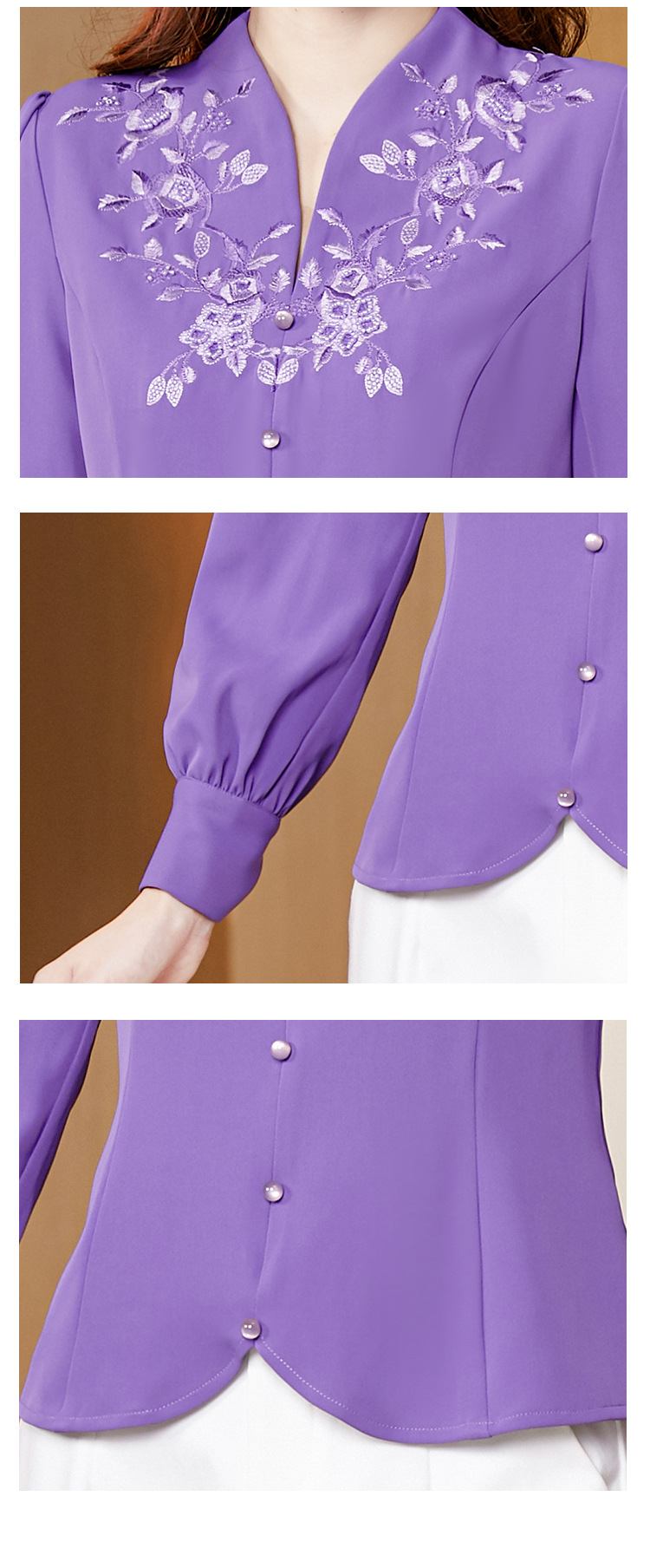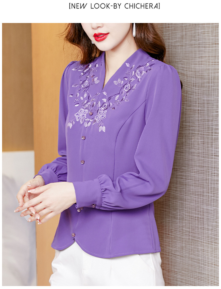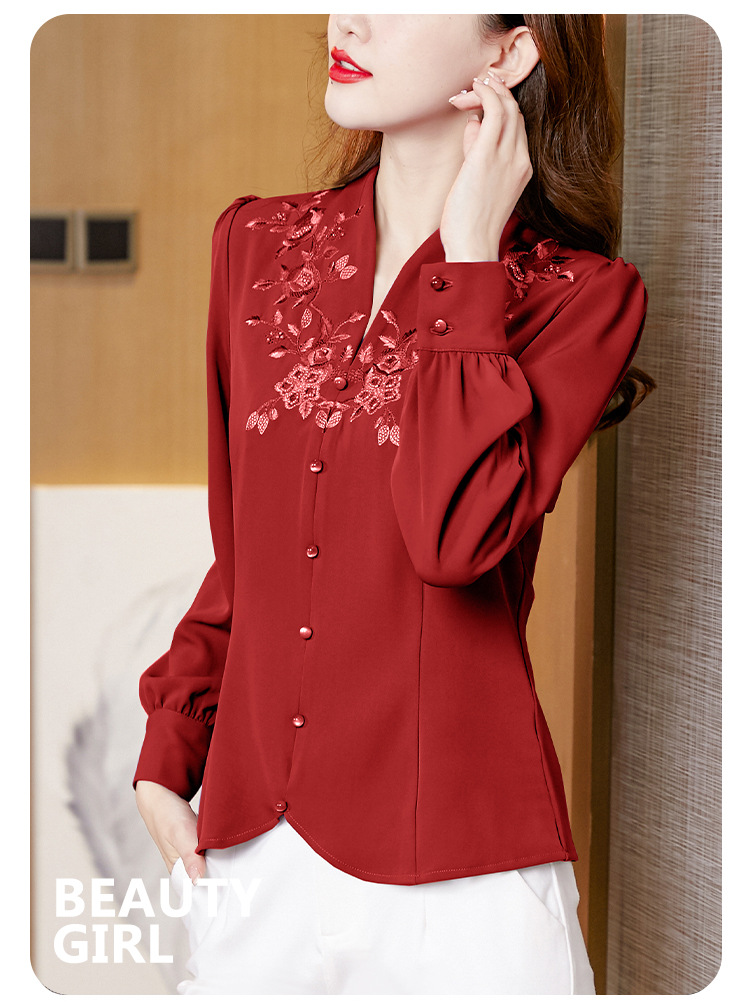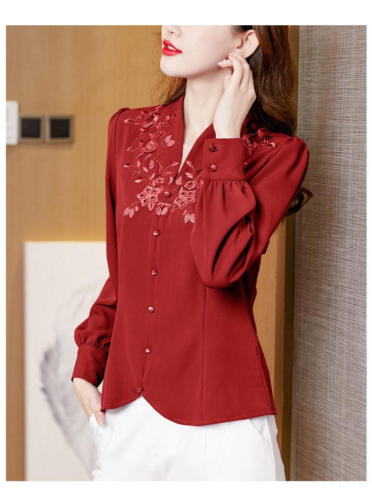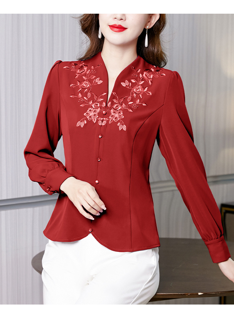 设计感绣花中式刺绣v领时尚显瘦衬衣职业气质KQL-A83N6812