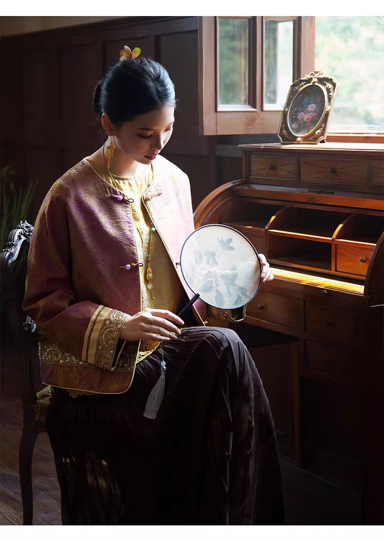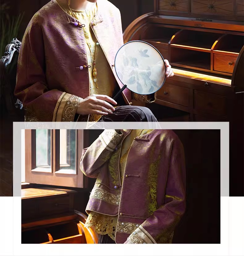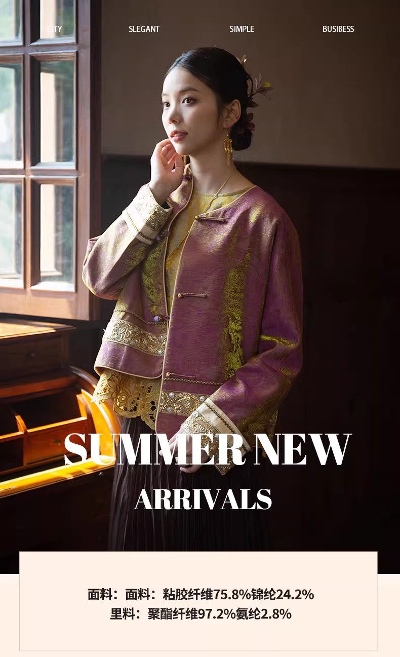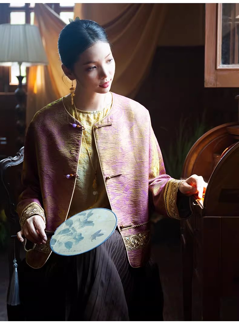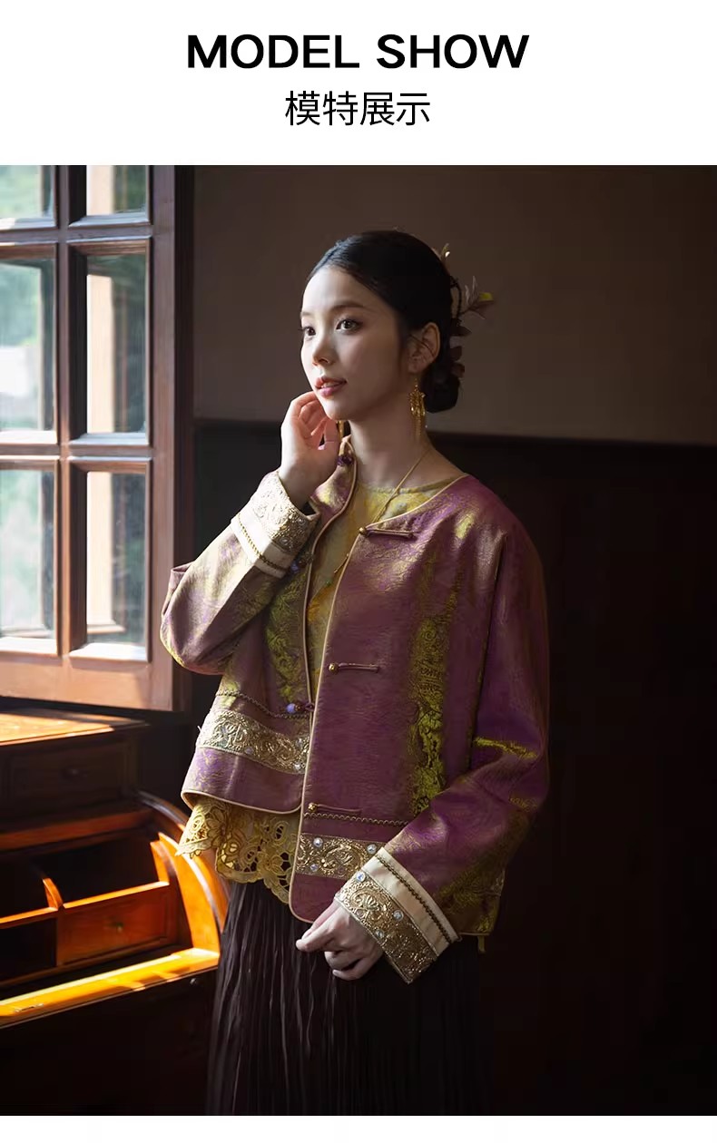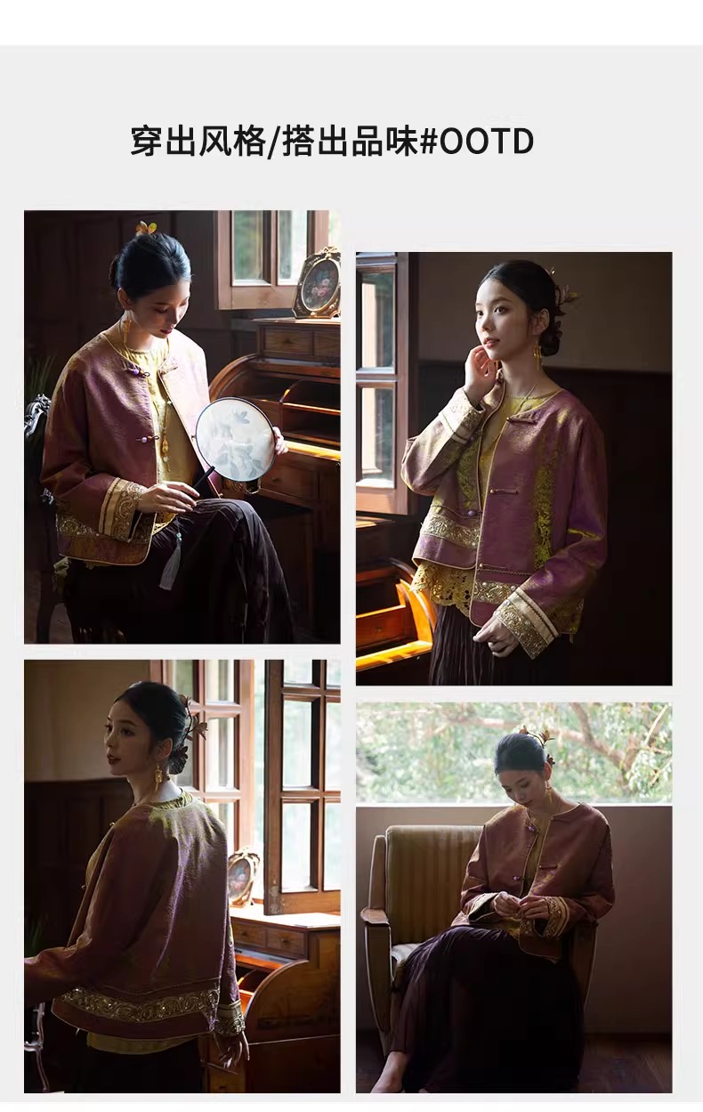 【门店同款】ENJOY秋季云敛-东方画笔印花盘扣镶珠外套 166494143