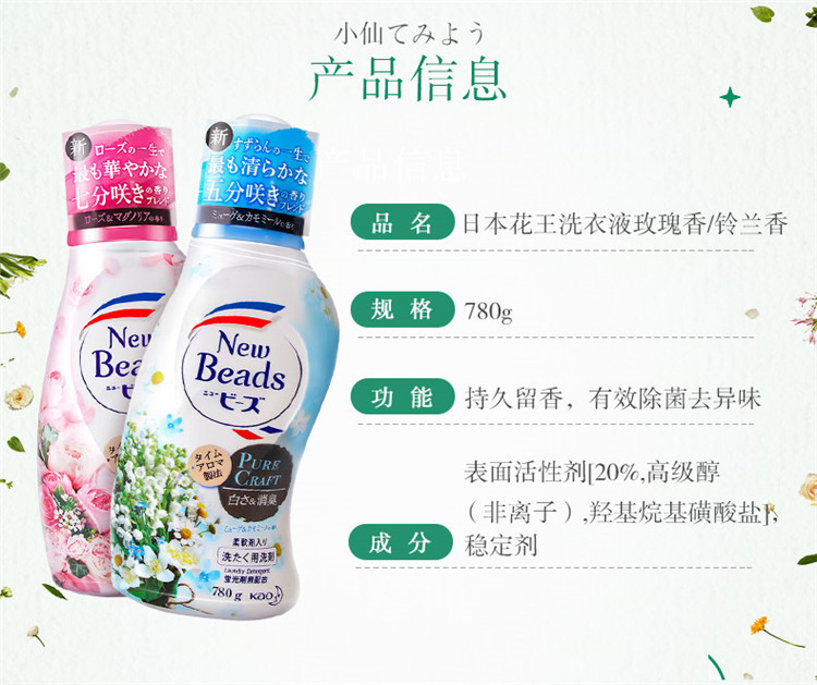 花王(KAO) 馨香洗衣液(甜蜜玫果香)690g 原740g(两款随机发、介意误拍)