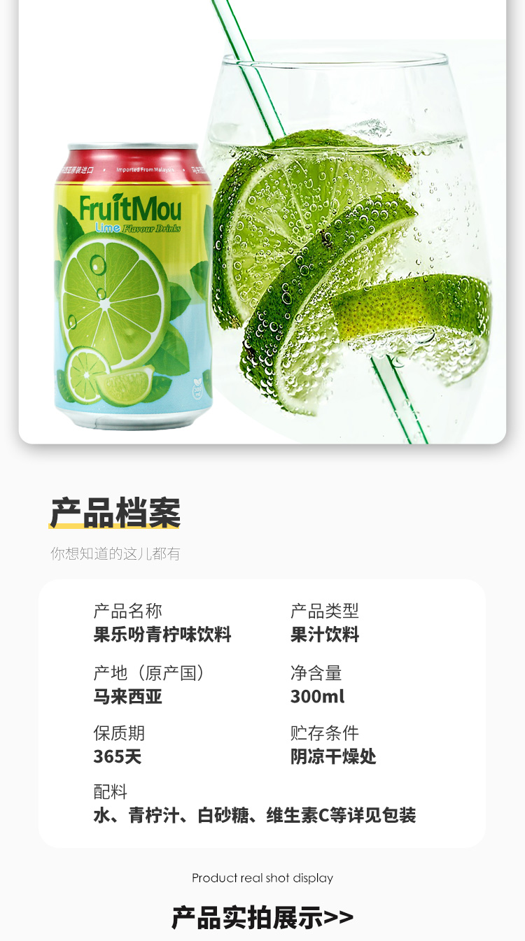 马来西亚果乐吩青柠味/蜜桃味饮料300ml 原汁原味新鲜爽口 冰镇一下口感更好 020337/020338