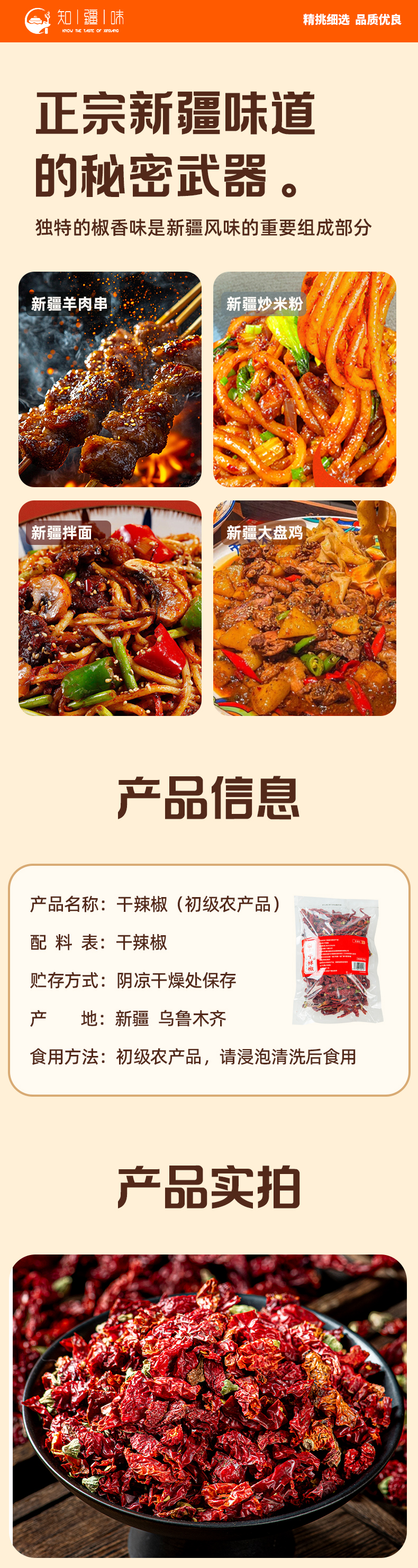 【品名/规格 】【知疆味】新疆干辣椒(250g/袋)
