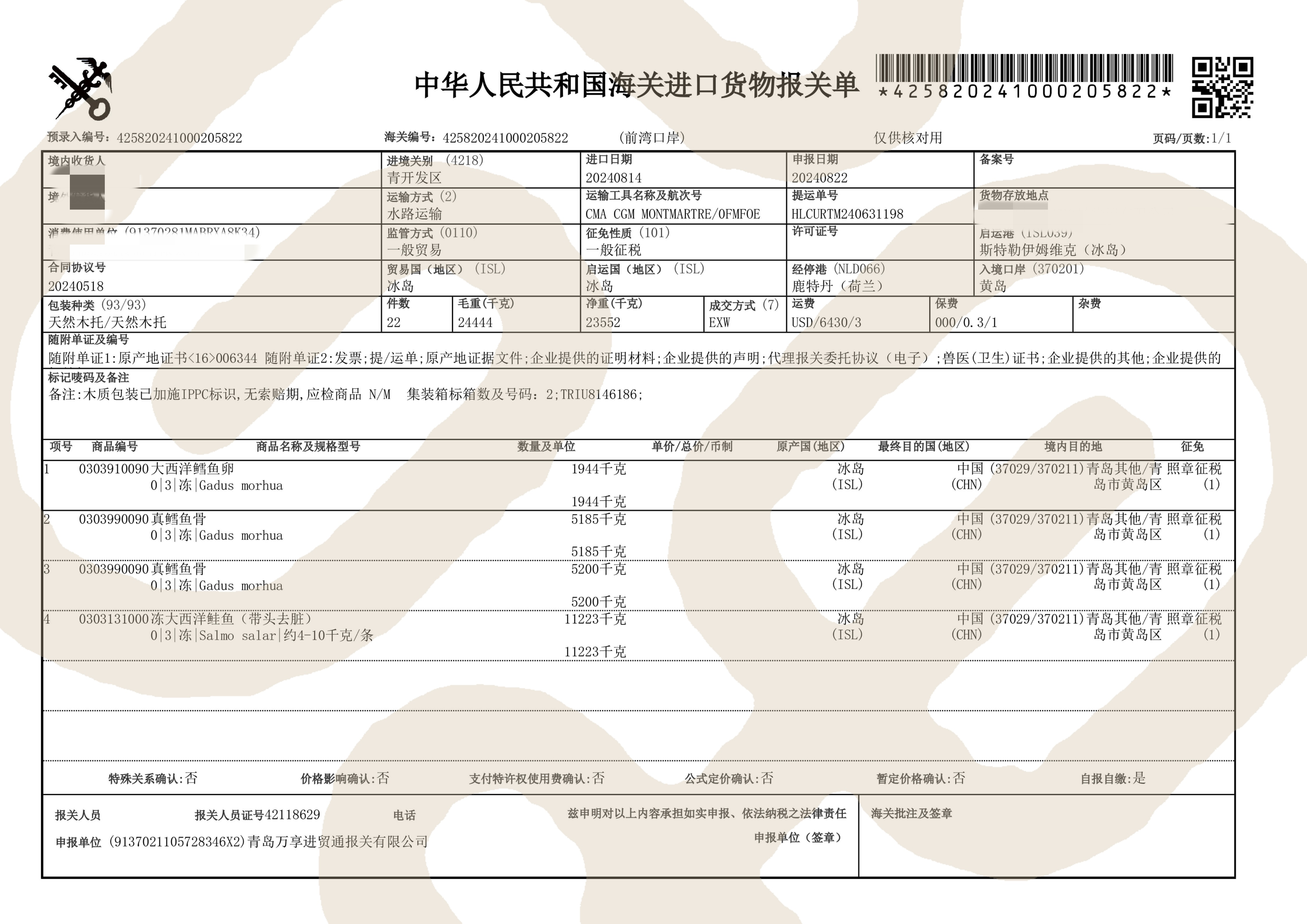 报关单和检验检疫报告高清大图奉上