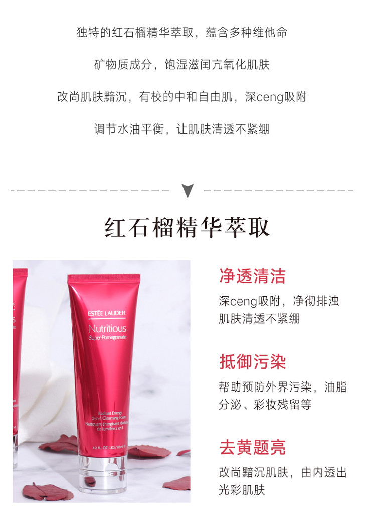 雅诗兰黛红石榴洗面奶,二合一洗面奶,保湿控油深层清洁毛孔洁面