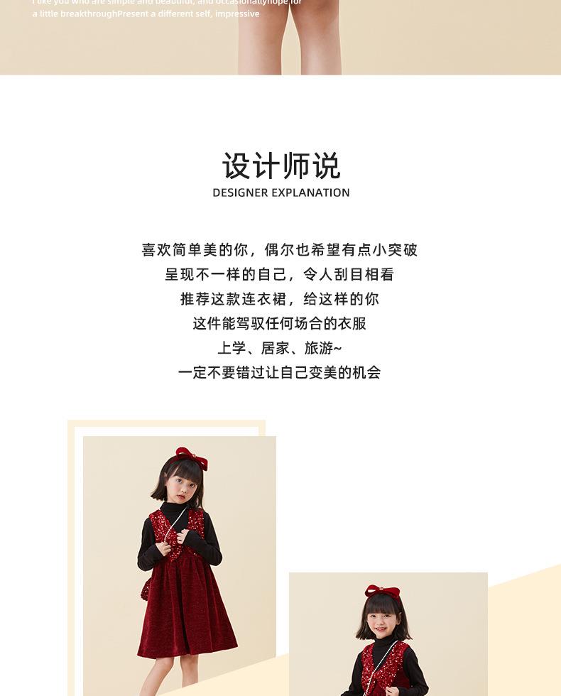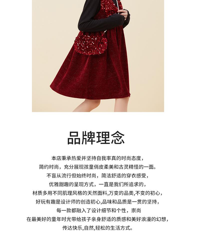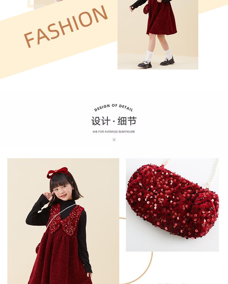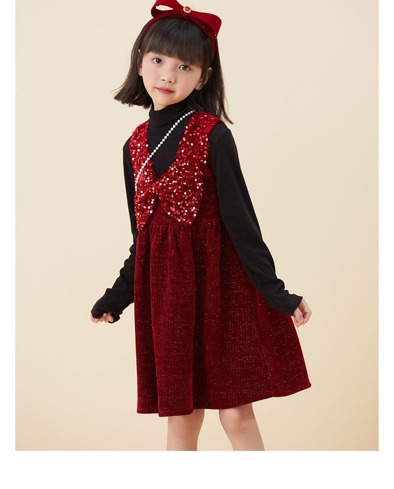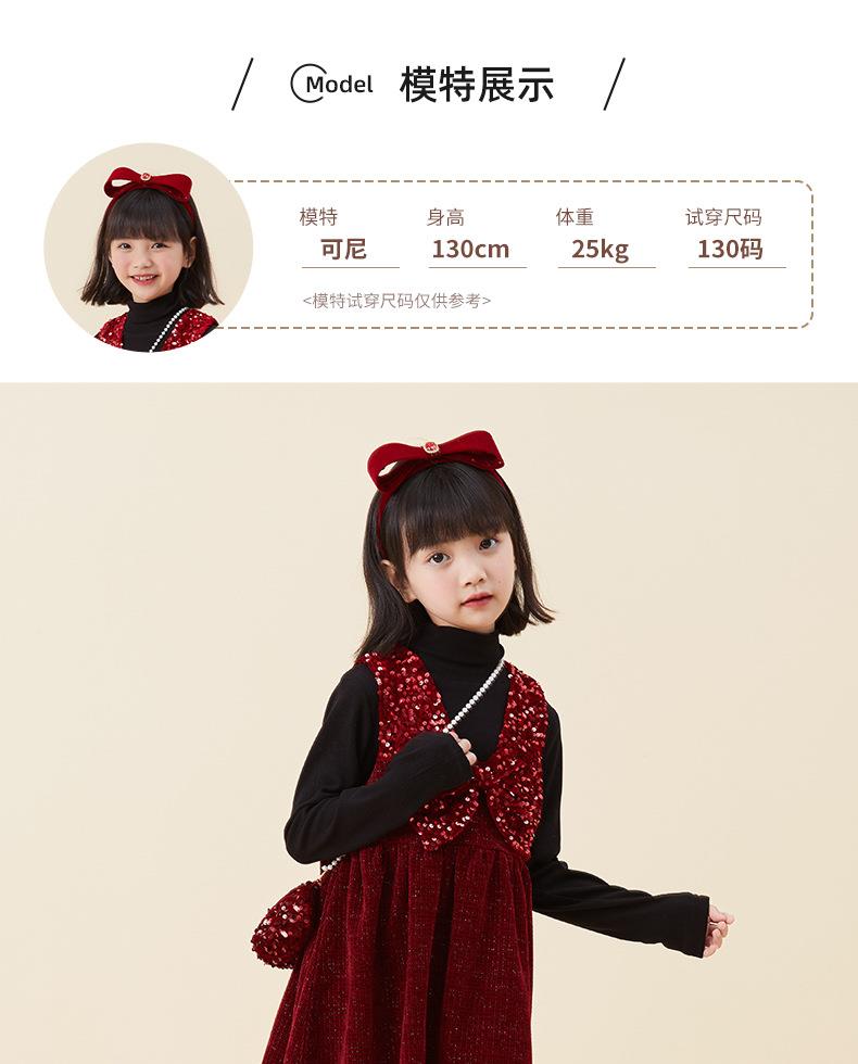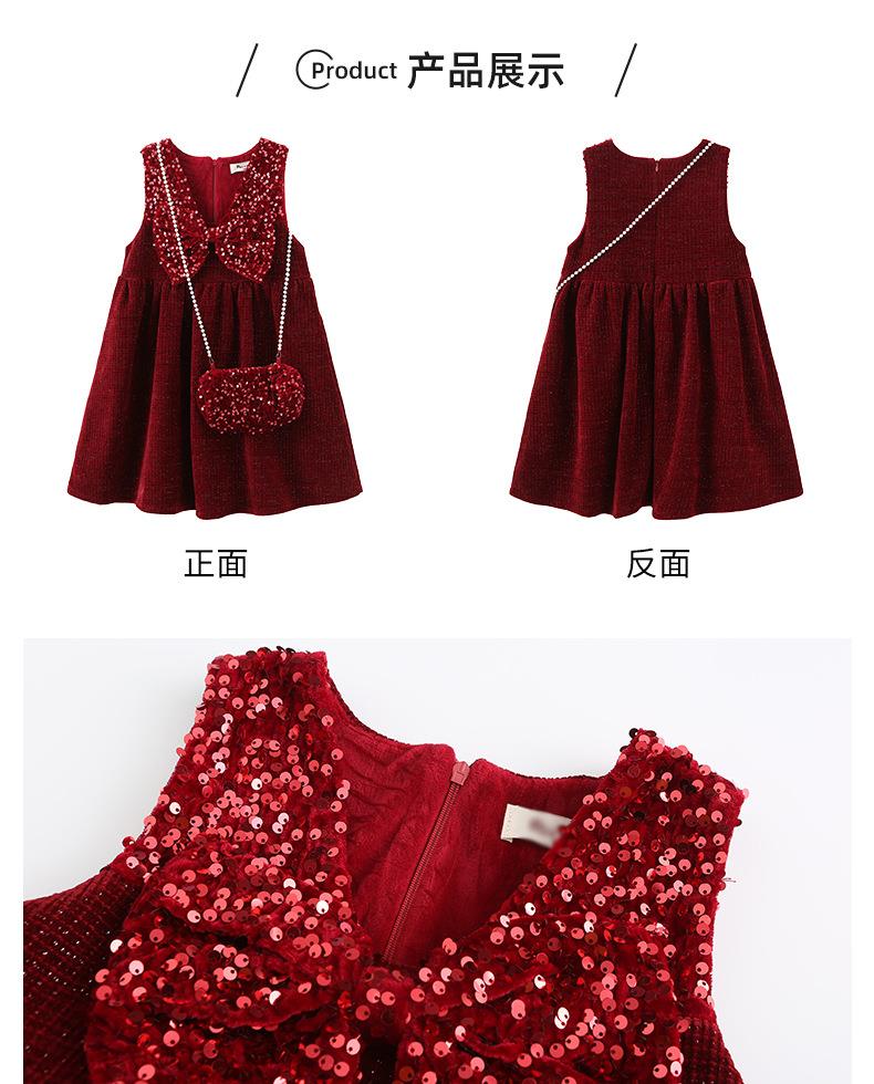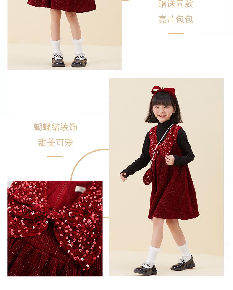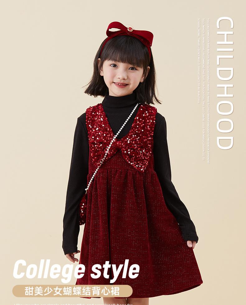 儿童亮片裙子秋冬套装女童蝴蝶结丝绒高级感时尚小女孩红色连衣裙