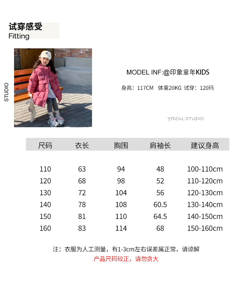 【YW】无忧购儿童韩版休闲小方块中长款羽绒服外套2410(截单后7天发货)