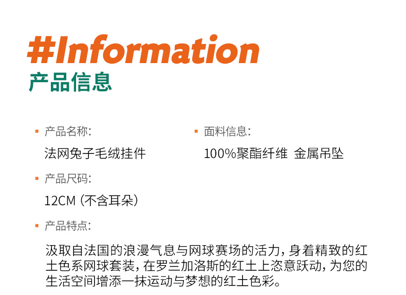 罗兰加洛斯法网吉祥物网球兔子挂饰公仔摆件毛绒挂件新年礼物