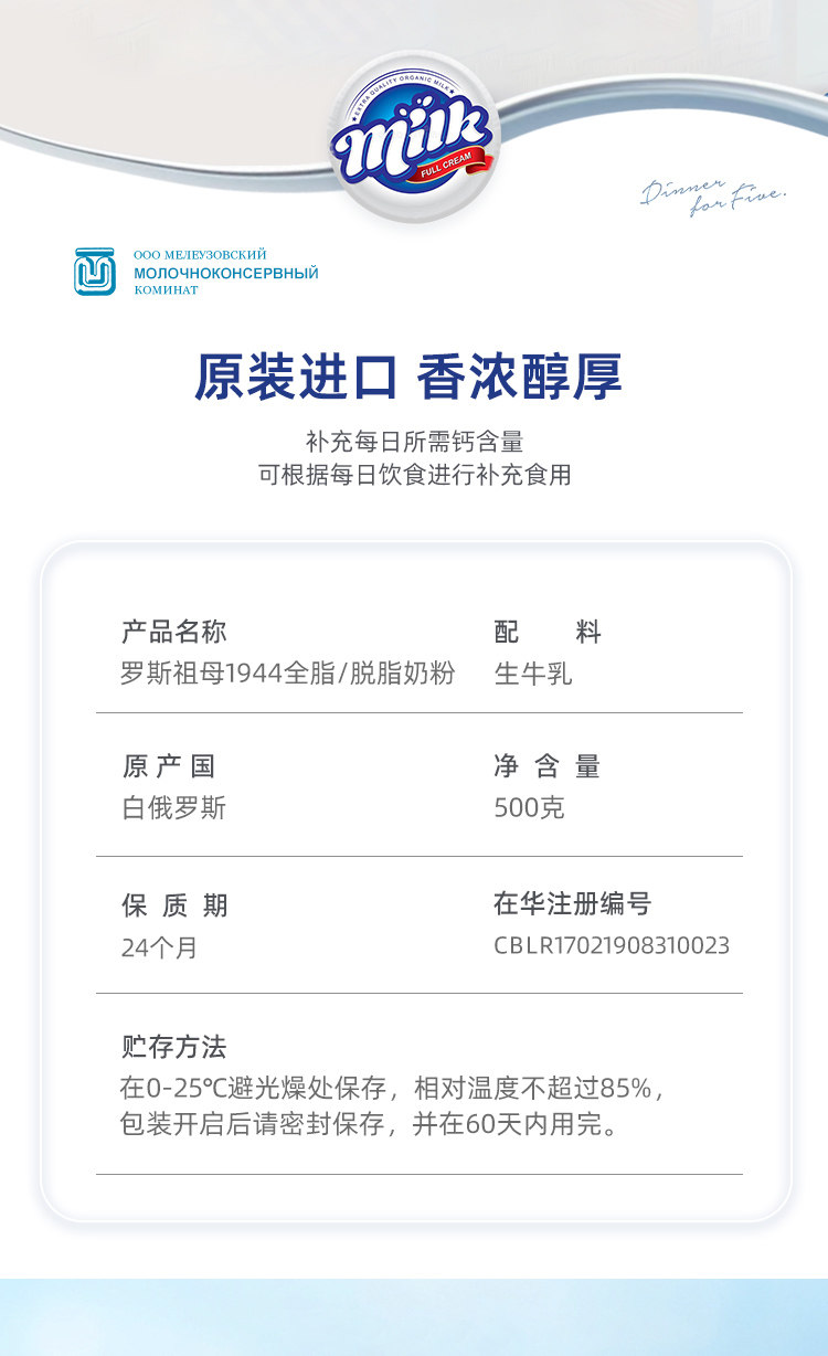 原装进口白俄罗斯罗斯祖母1944奶粉(原装进口)500g袋装