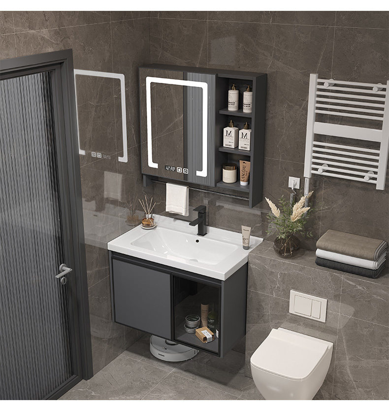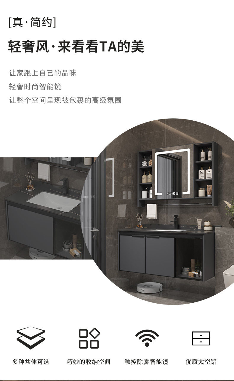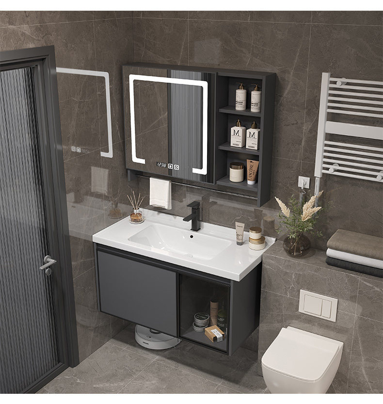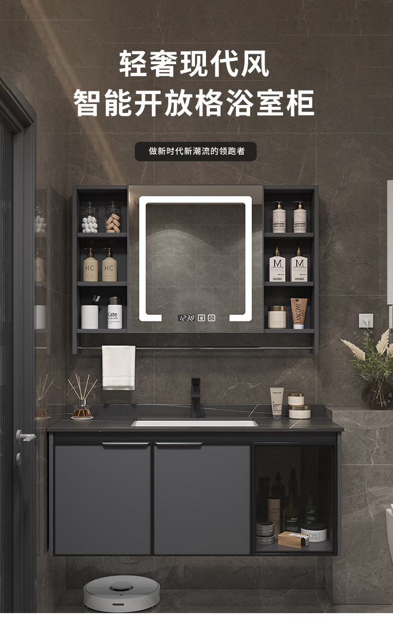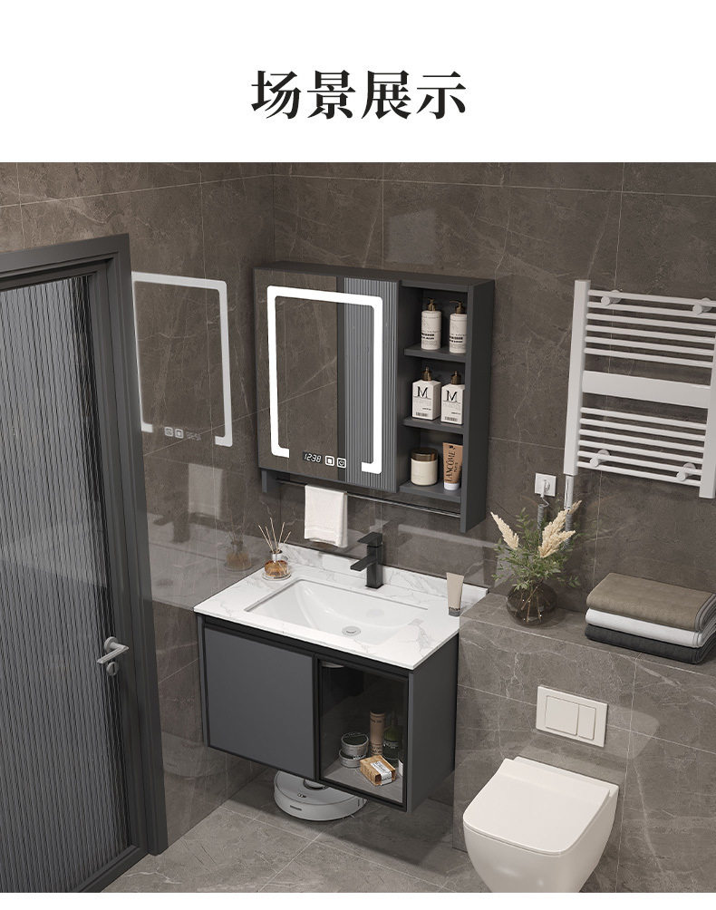 一体组合太空镜柜毛巾铝台杆洗脸智能陶瓷洗手盆浴室柜洗漱卫生间