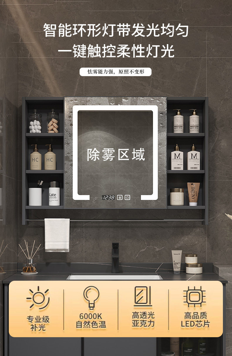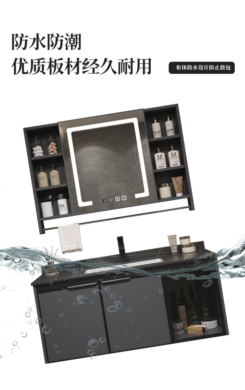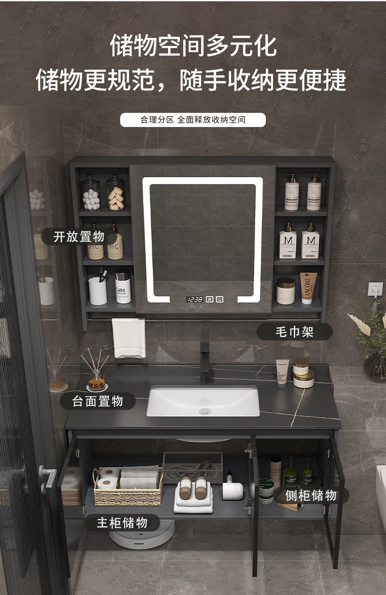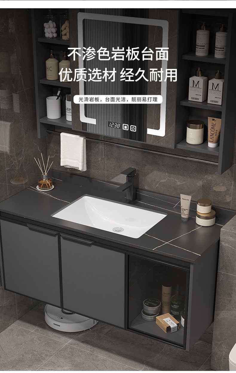一体组合太空镜柜毛巾铝台杆洗脸智能陶瓷洗手盆浴室柜洗漱卫生间