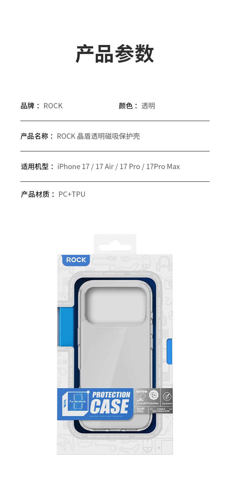 ROCK iPhone 17系列 晶盾透明保护壳