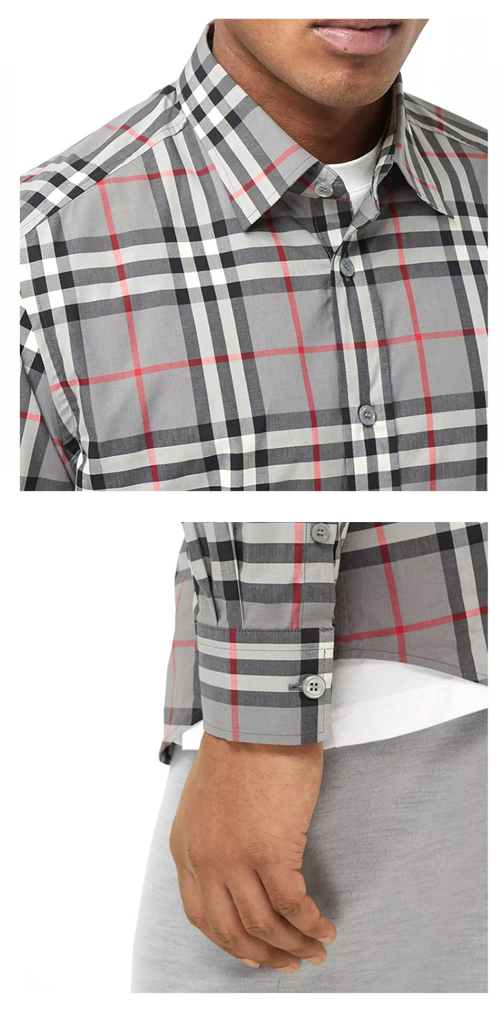 BURBERRY 巴宝莉 男士格纹棉府绸长袖衬衫 格子 8028886 A4706