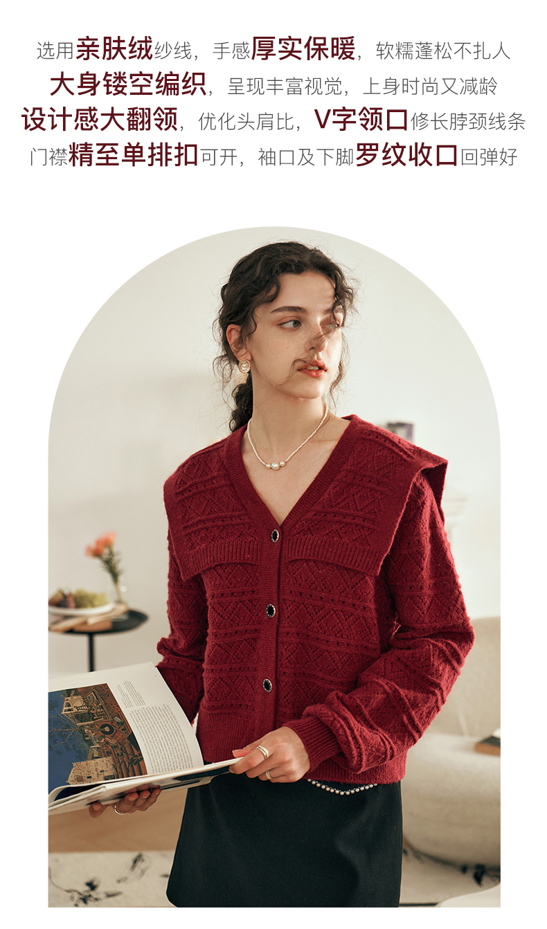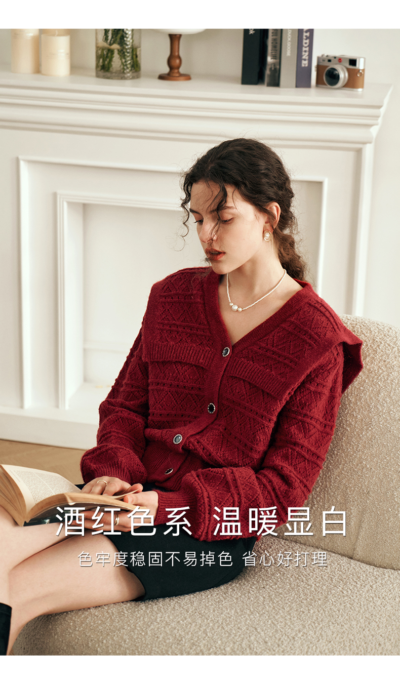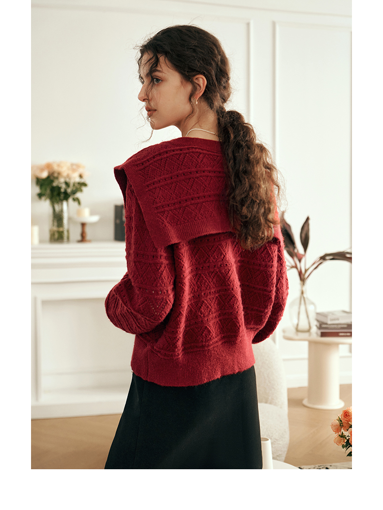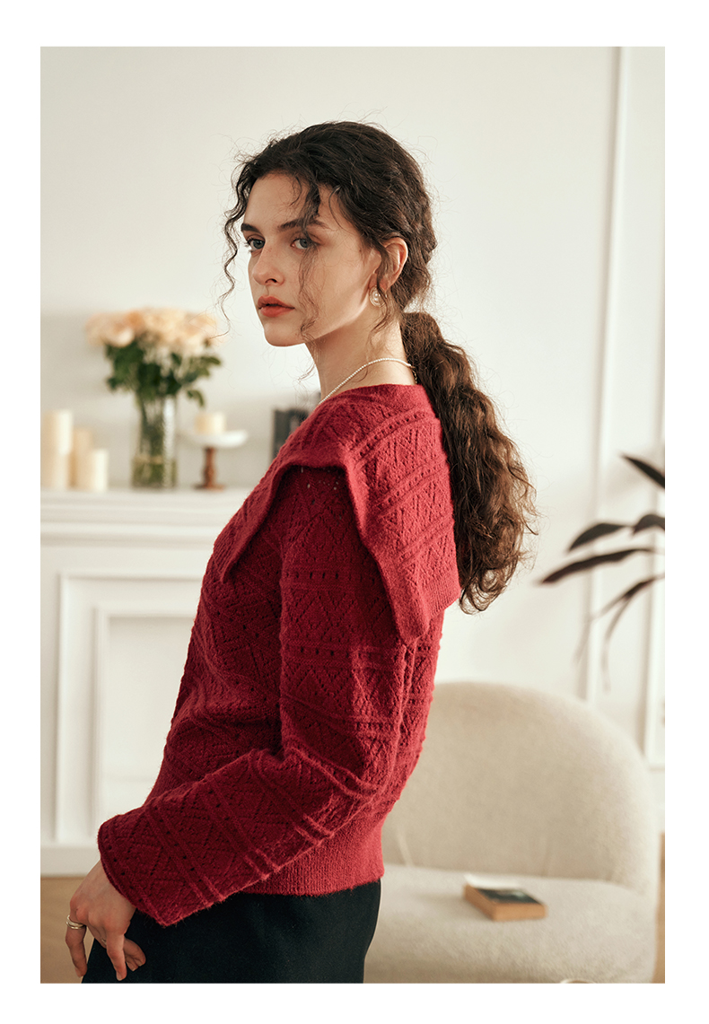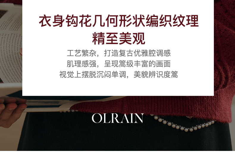 OLrain欧芮儿法式酒红色毛衣女秋装2023年新款宽松慵懒显瘦针织衫