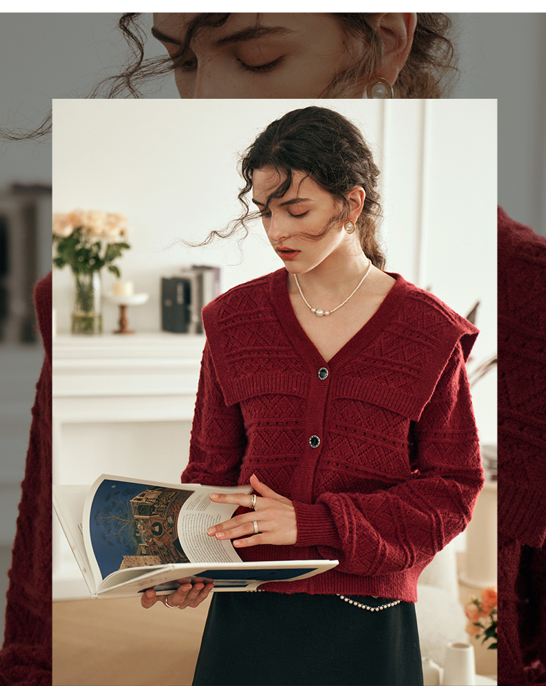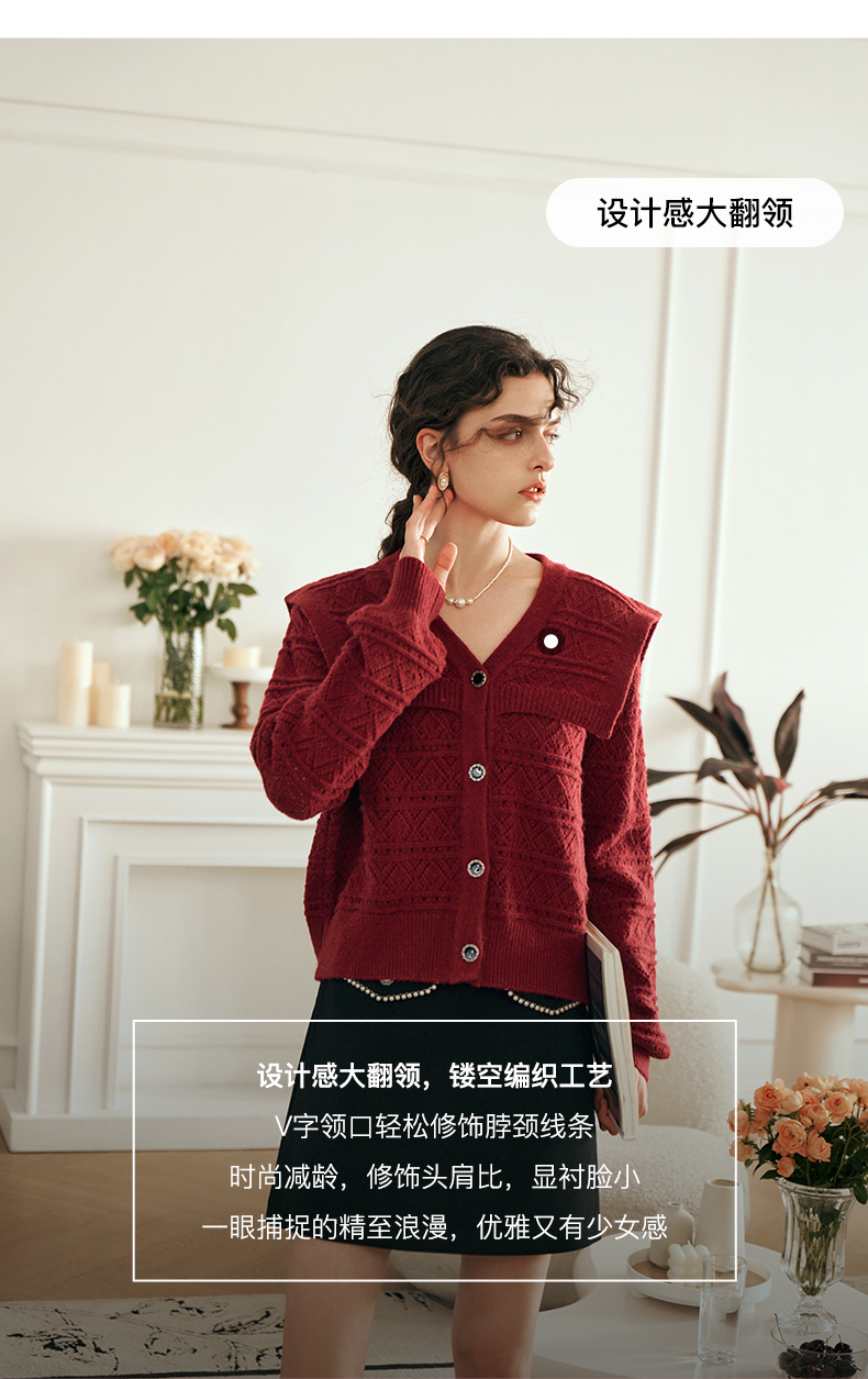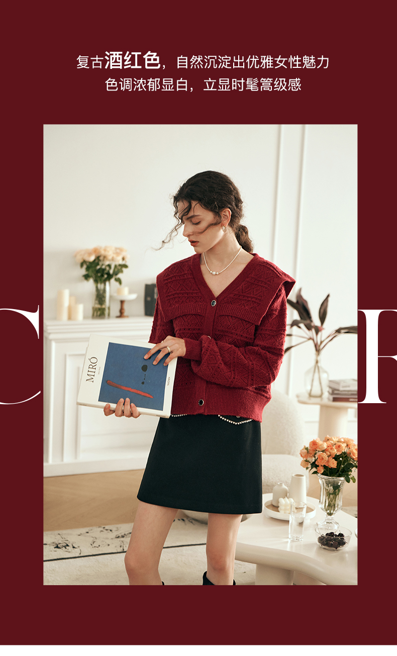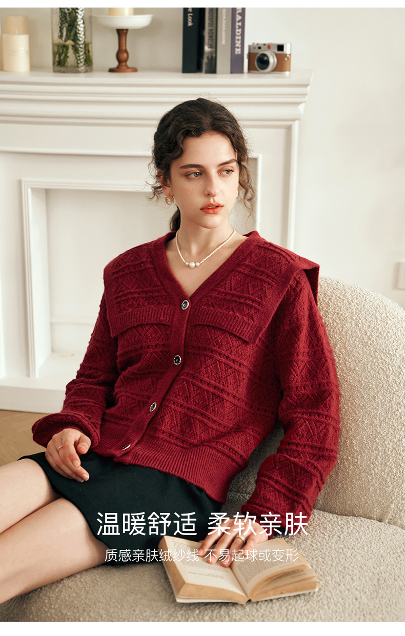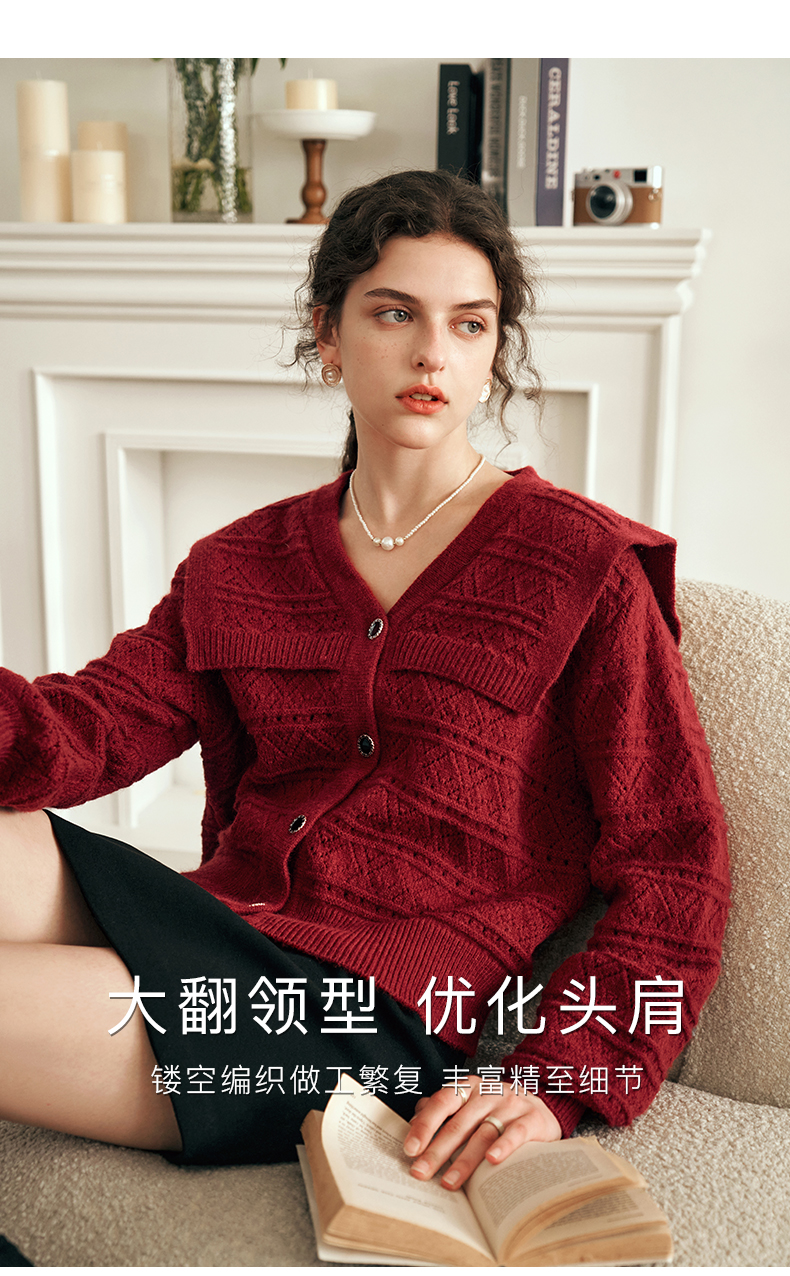 OLrain欧芮儿法式酒红色毛衣女秋装2023年新款宽松慵懒显瘦针织衫