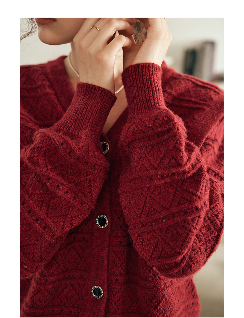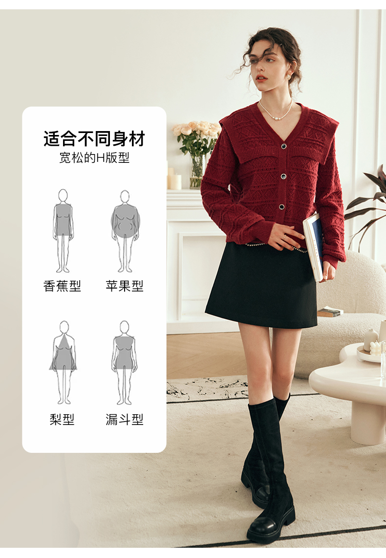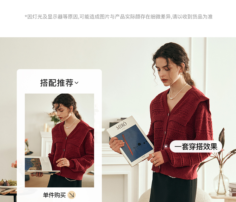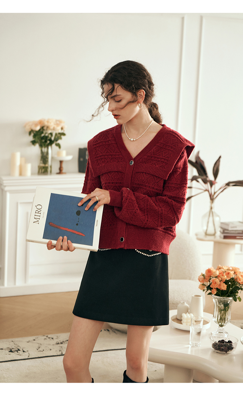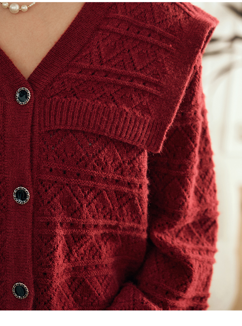 OLrain欧芮儿法式酒红色毛衣女秋装2023年新款宽松慵懒显瘦针织衫