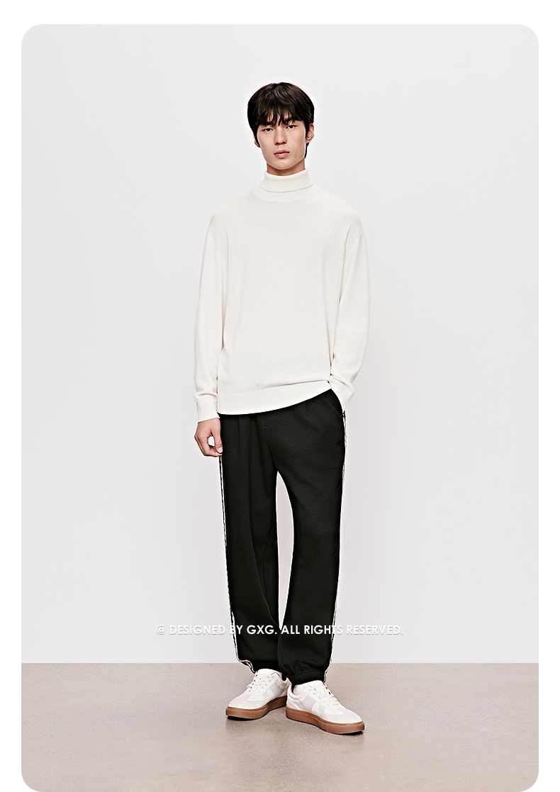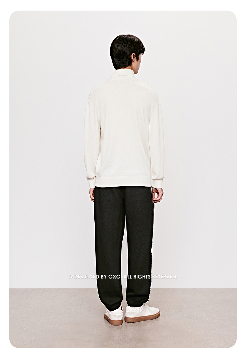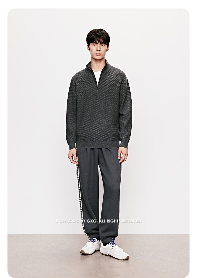 GXG男装 双色字母提花毛衫宽松针织衫男低领打底衫 2024秋季热卖