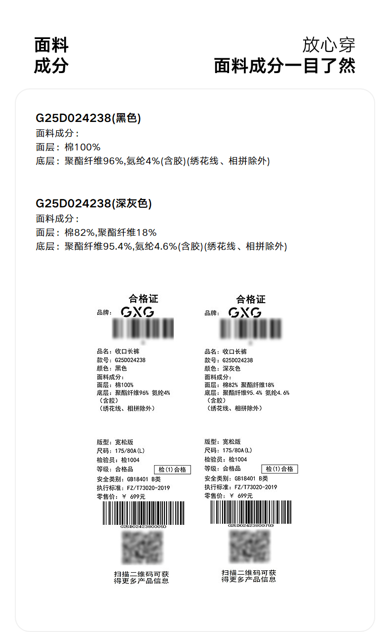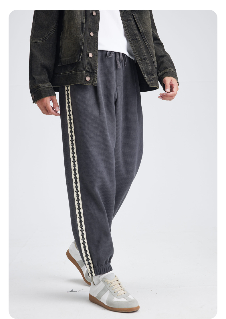 GXG男装 侧织带束脚长裤华夫格肌理休闲裤男卫裤 2025年冬季新品