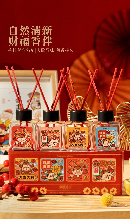 「9.9到手!4瓶礼盒装」伊览芳华新年香薰礼盒 去异味除臭摆蛇年香薰卧室酒店居家日用香氛精油