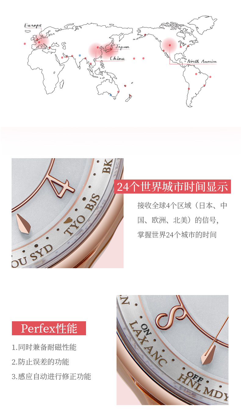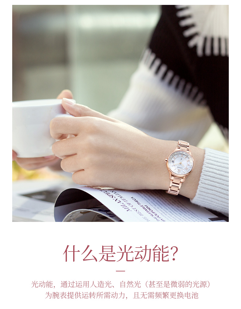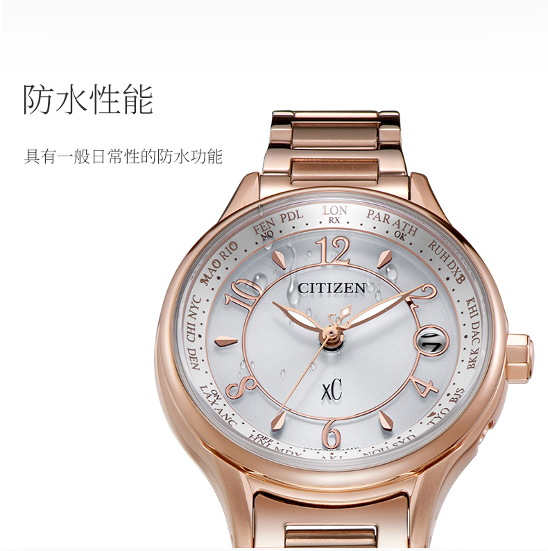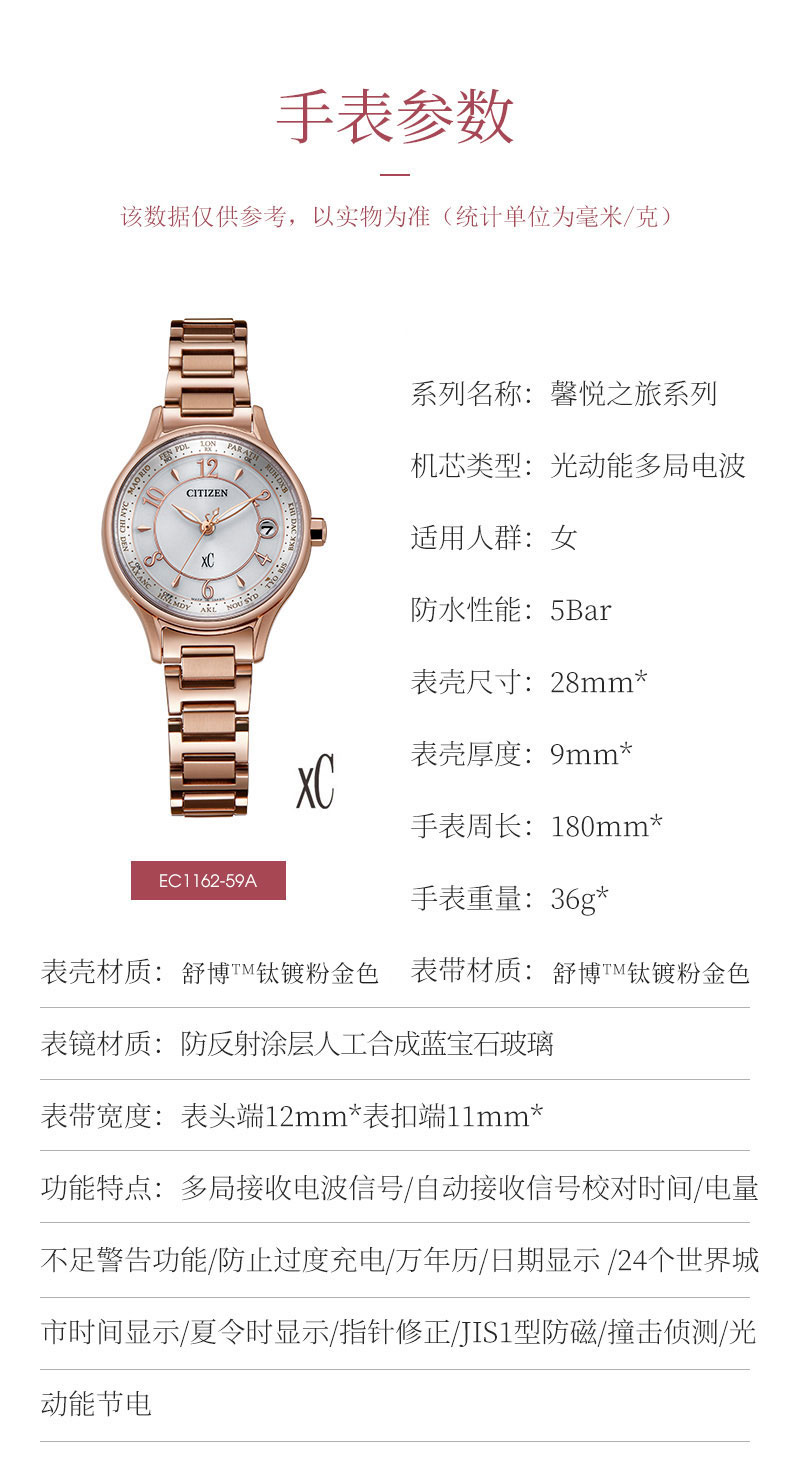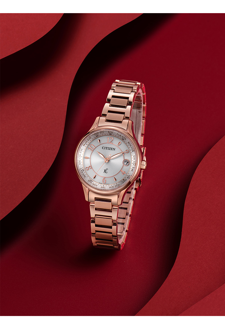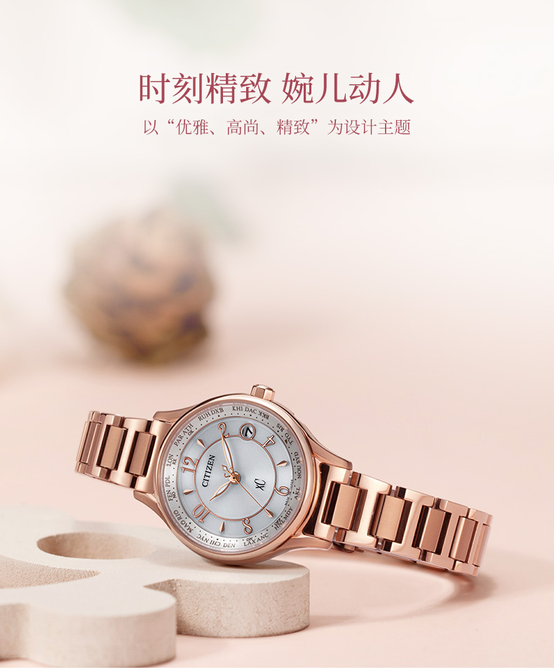 西铁城日本官方正品舒博钛镀樱花粉金色光动能多局电波女表EC1162-59A