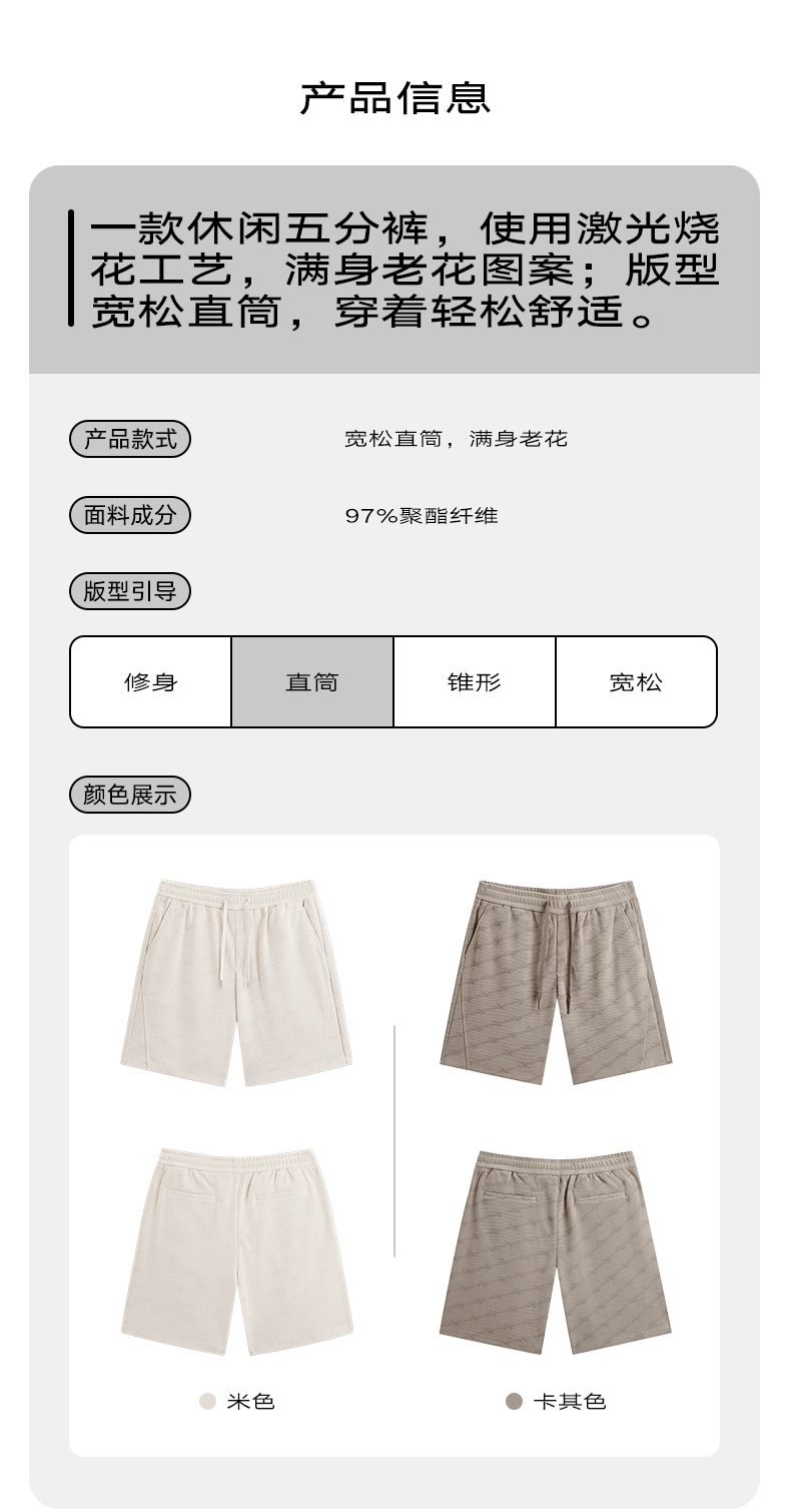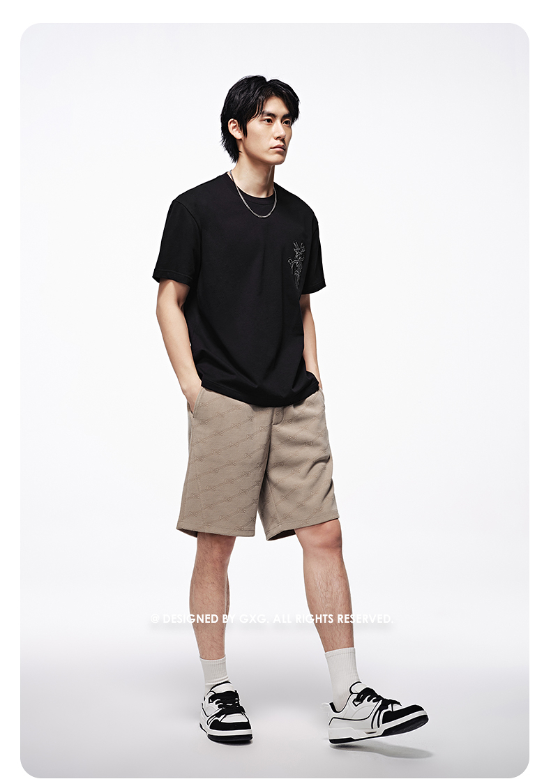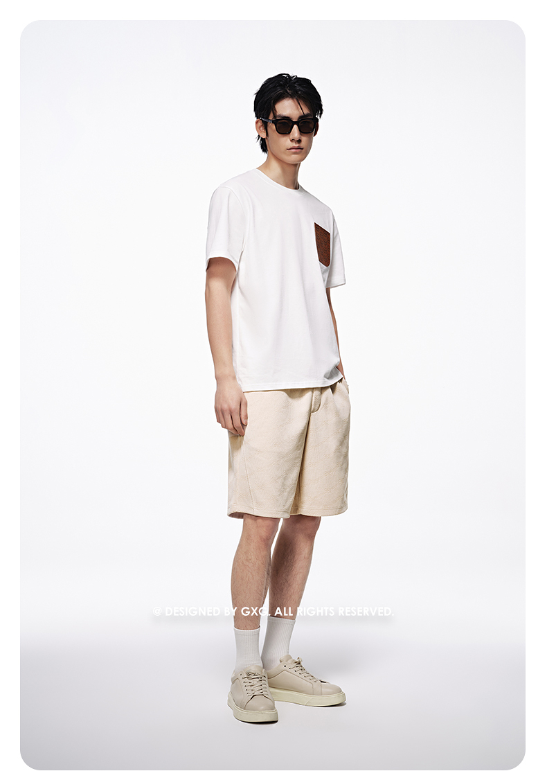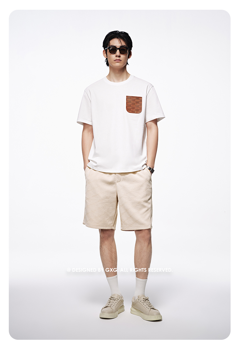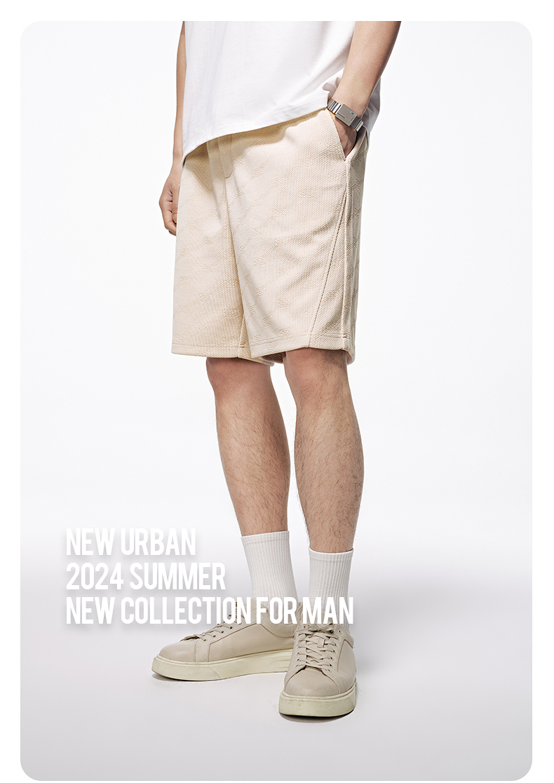 GXG男装 肌理感休闲短裤织带运动短裤 24年夏G24X222010