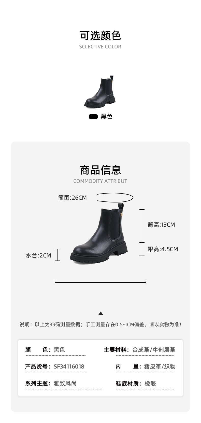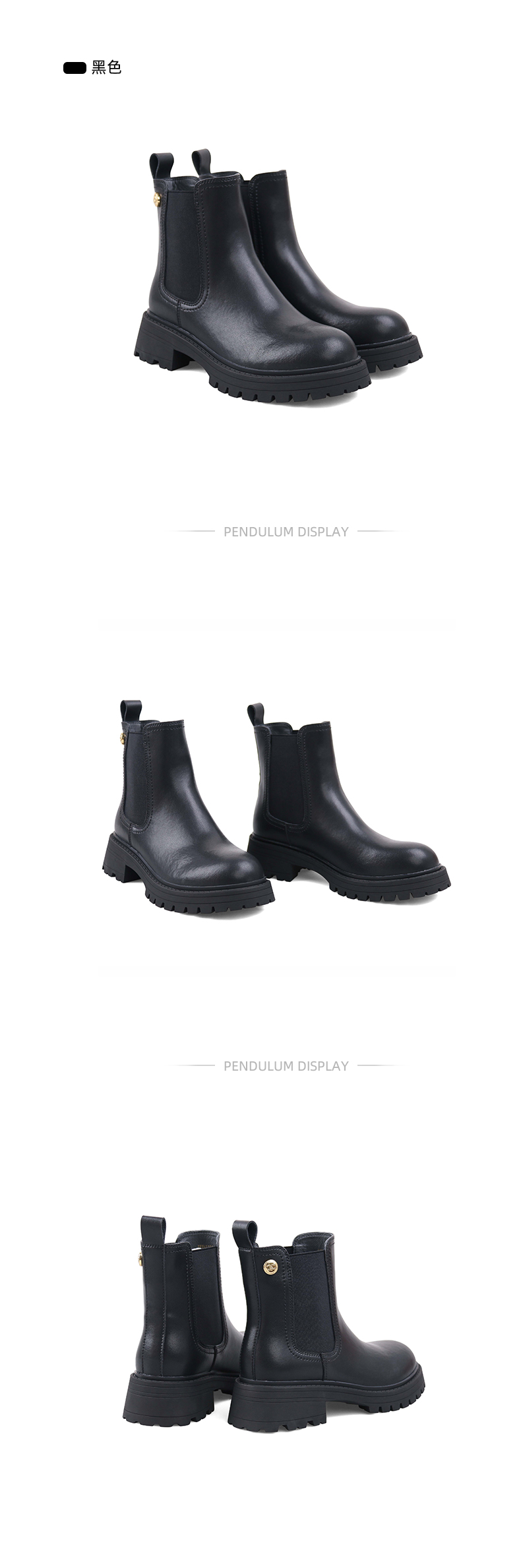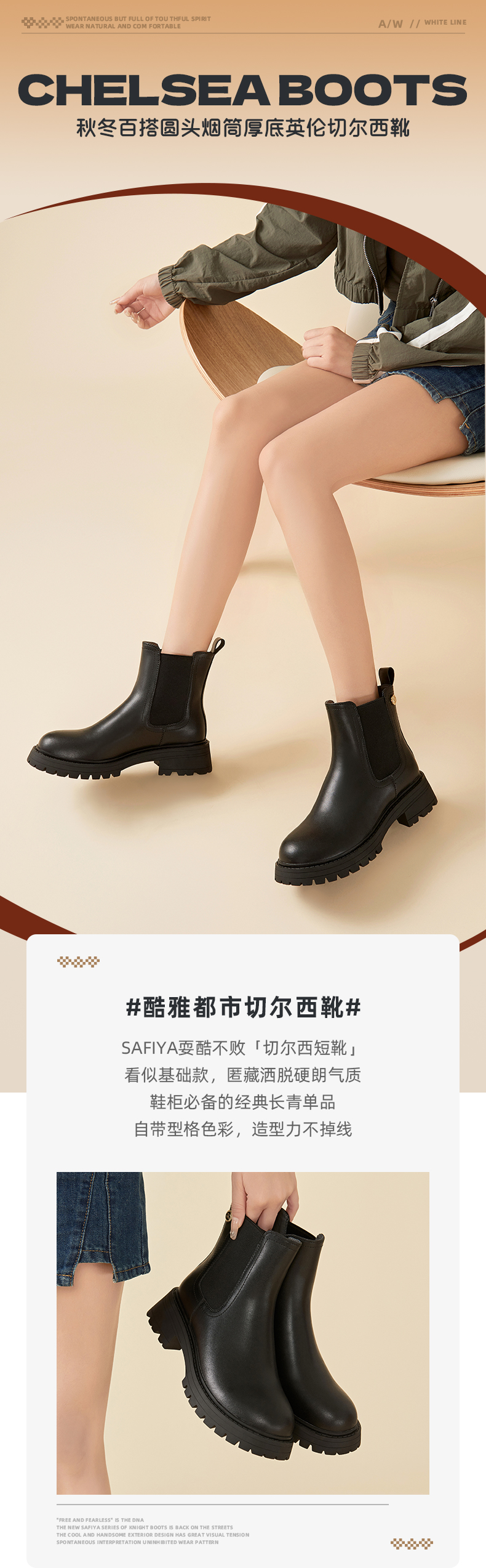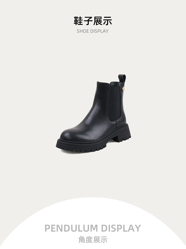 Safiya/索菲娅2023秋冬百搭圆头烟筒厚底英伦切尔西靴 SF34116018