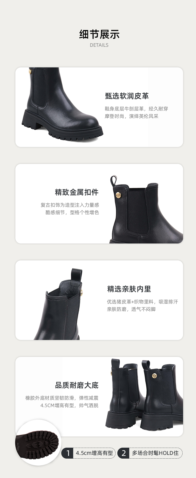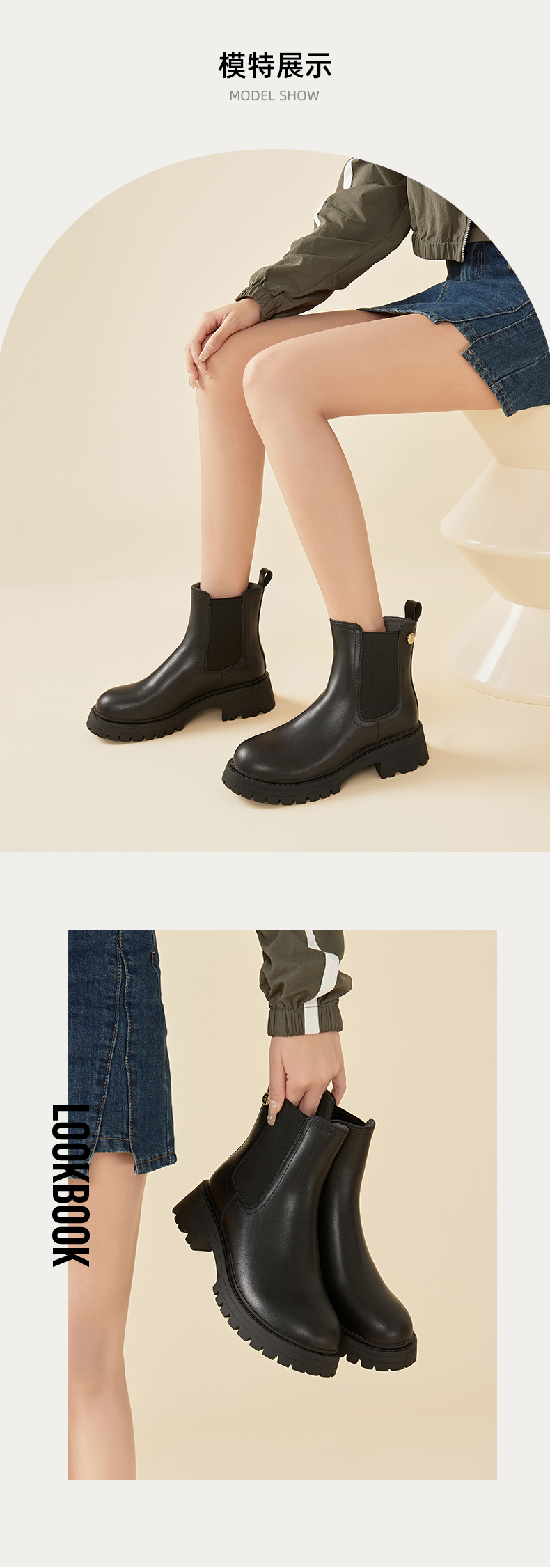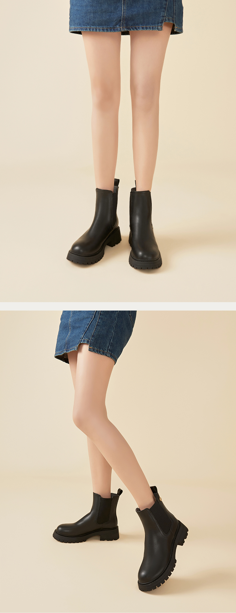 Safiya/索菲娅2023秋冬百搭圆头烟筒厚底英伦切尔西靴 SF34116018