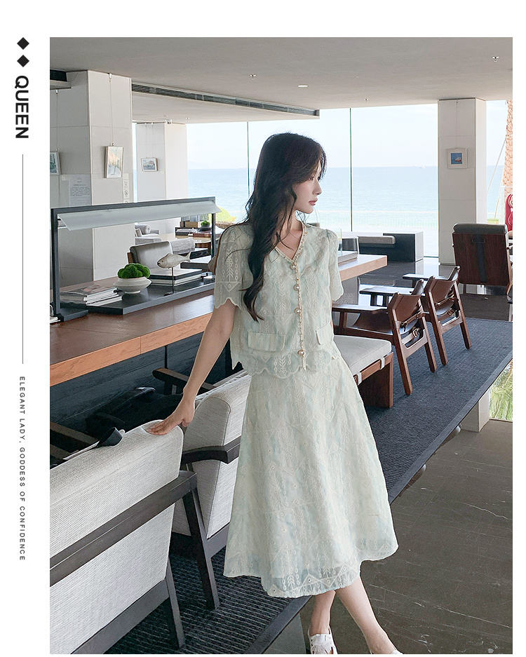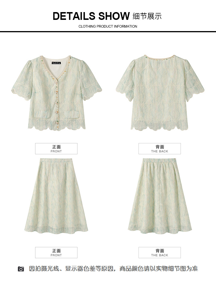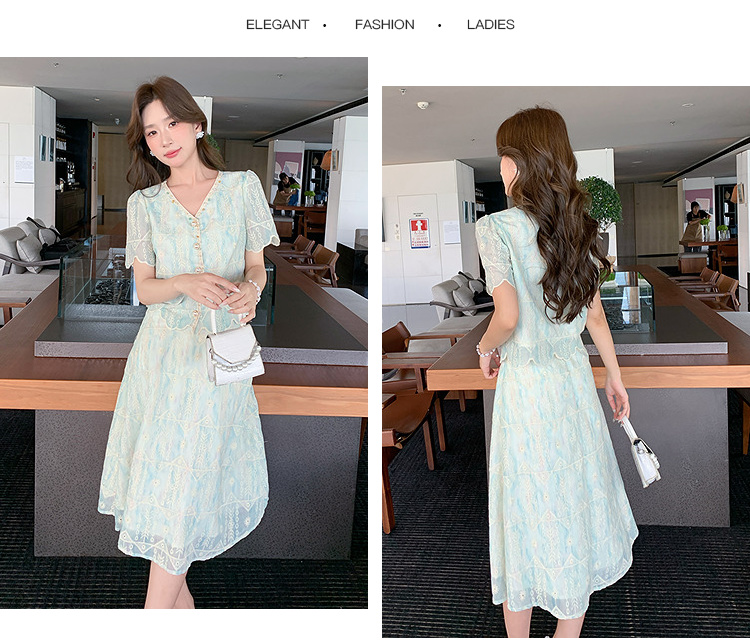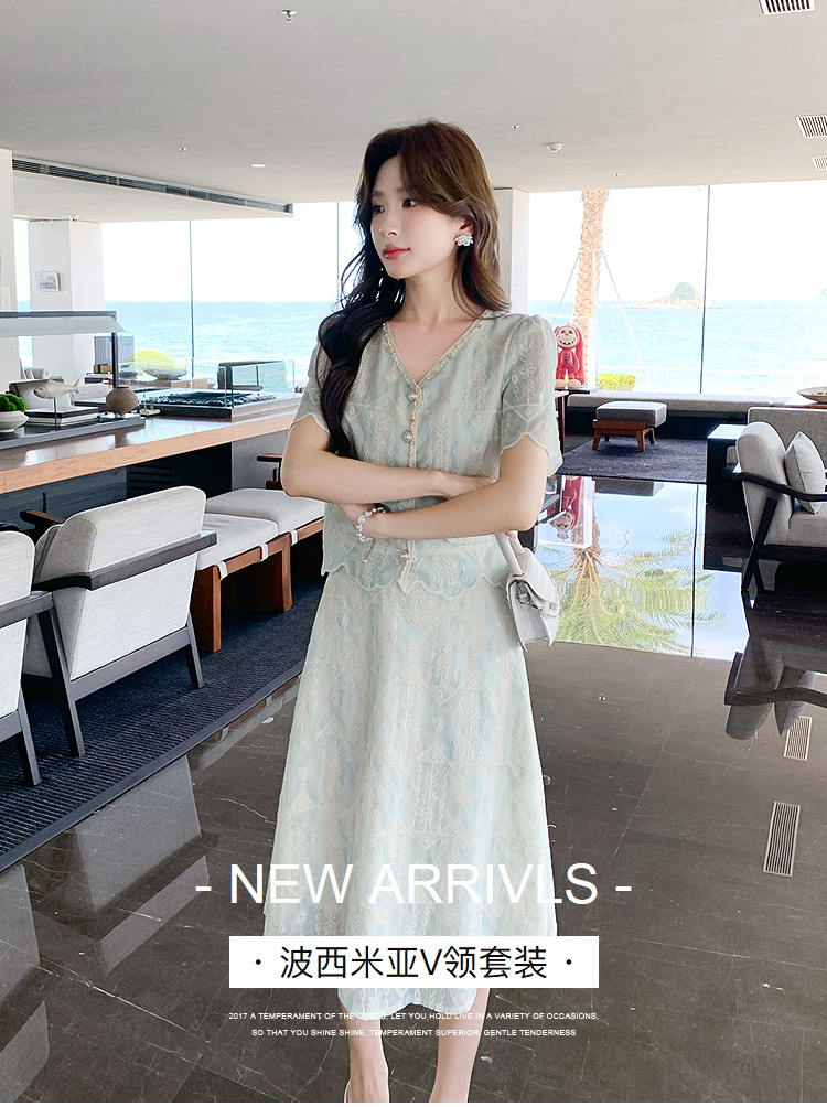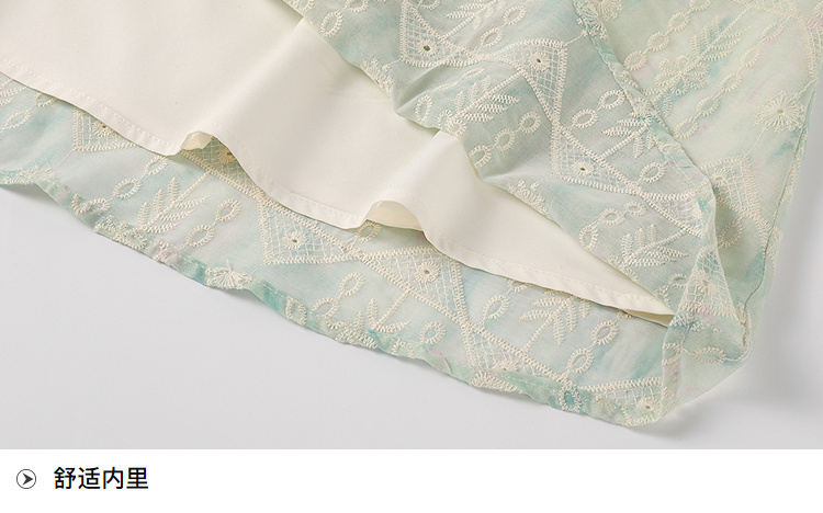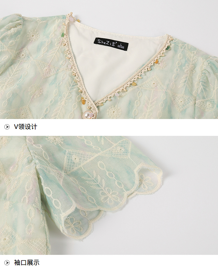 奢姿大码女装2026夏季波浪减龄绣花V领两件套胖妹妹时尚甜美套装9962994478AB