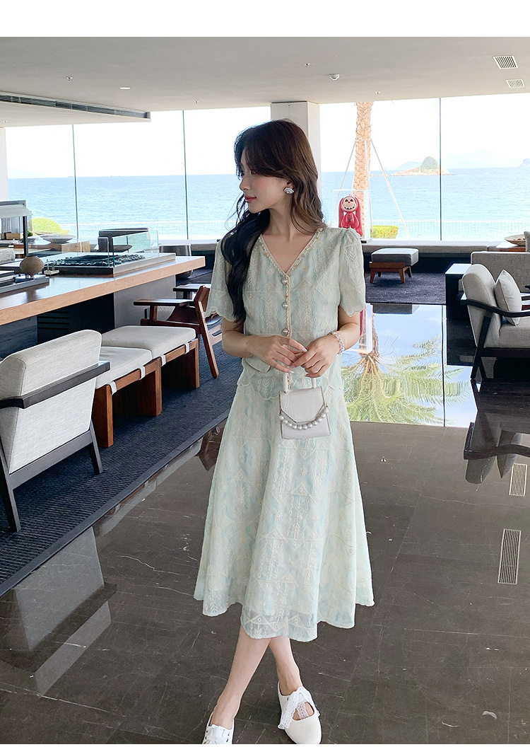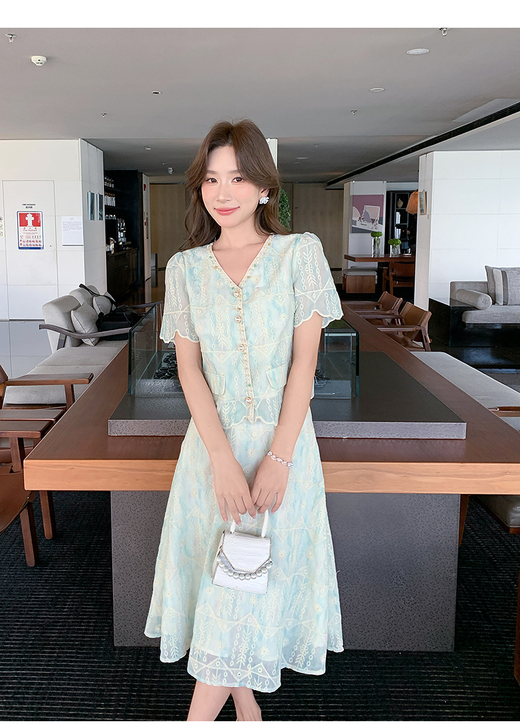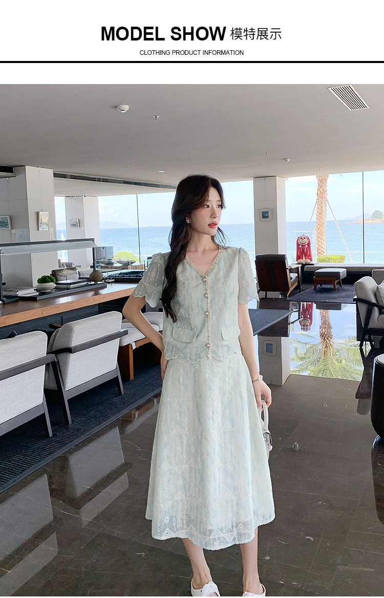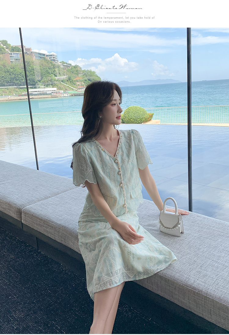 奢姿大码女装2026夏季波浪减龄绣花V领两件套胖妹妹时尚甜美套装9962994478AB