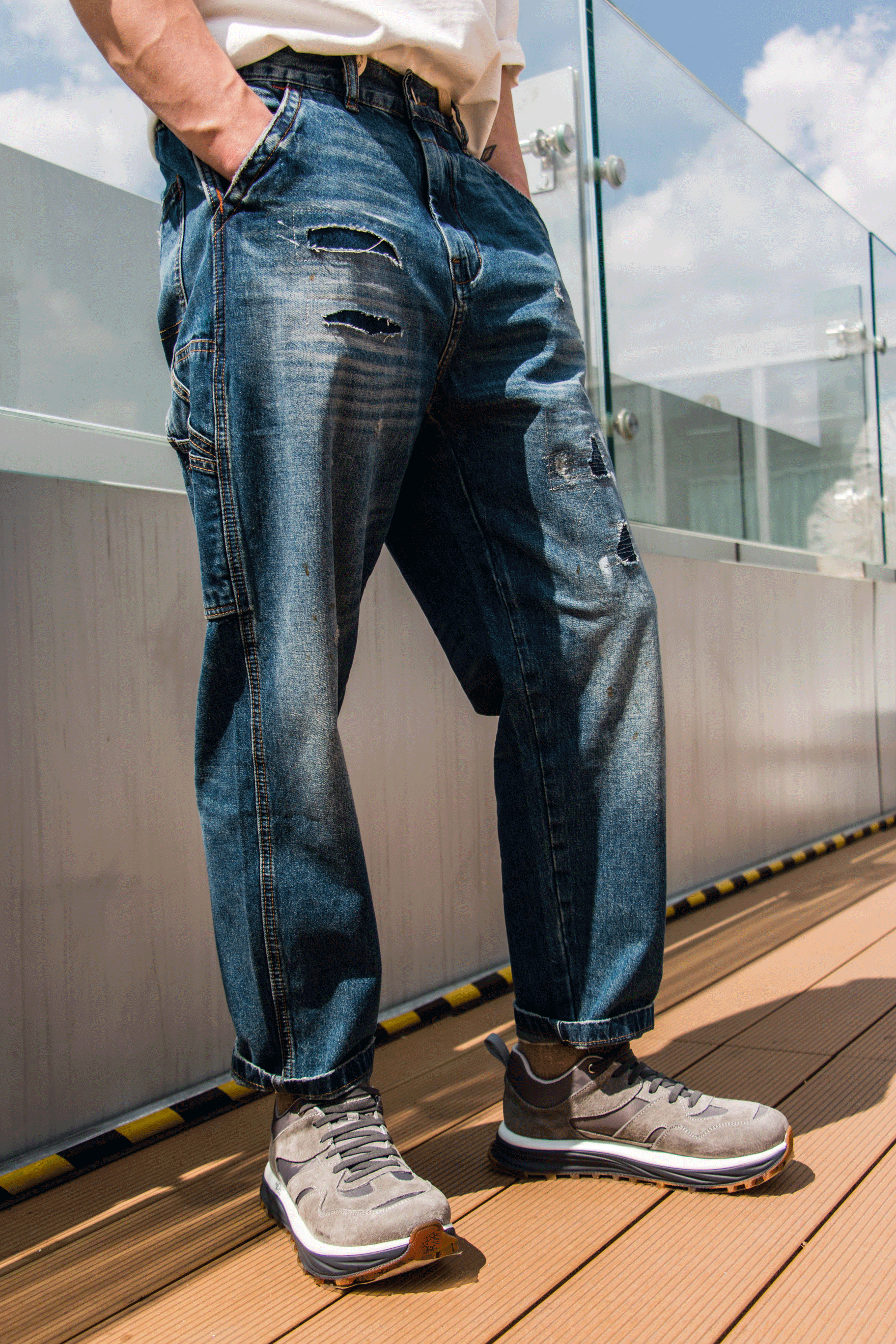 DEC B119331349 男士纯棉牛仔裤宽松蓝色牛仔裤