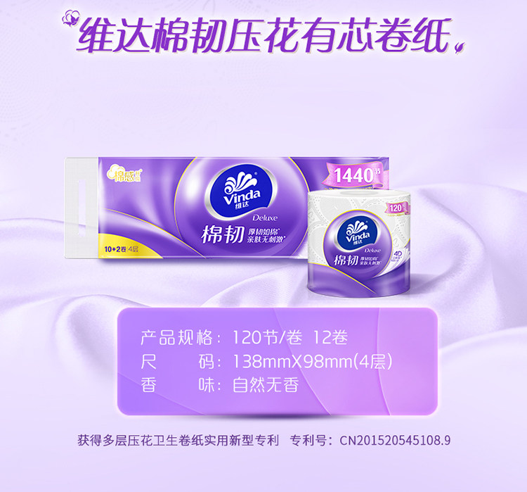 维达 绵韧压花有芯卫卷V4669(110g*12卷4层)