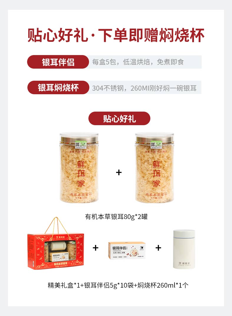 本草银耳生产日期:2025.8月 避光常温干燥处保质期12个月,开封建议30天内食用完