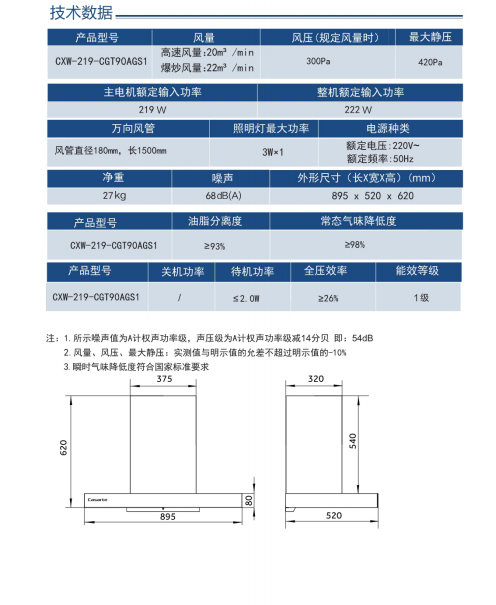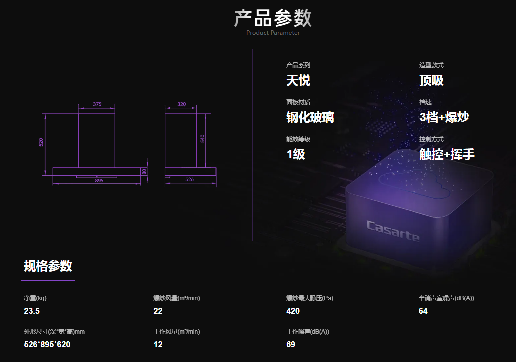 卡萨帝顶吸式吸油烟机CXW-219-CGT90AGS1