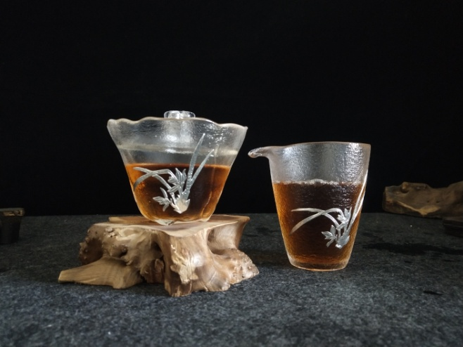 华艺银坊 幽兰八件套 可单选 家用茶具会客茶具 人工无铅玻璃杯
