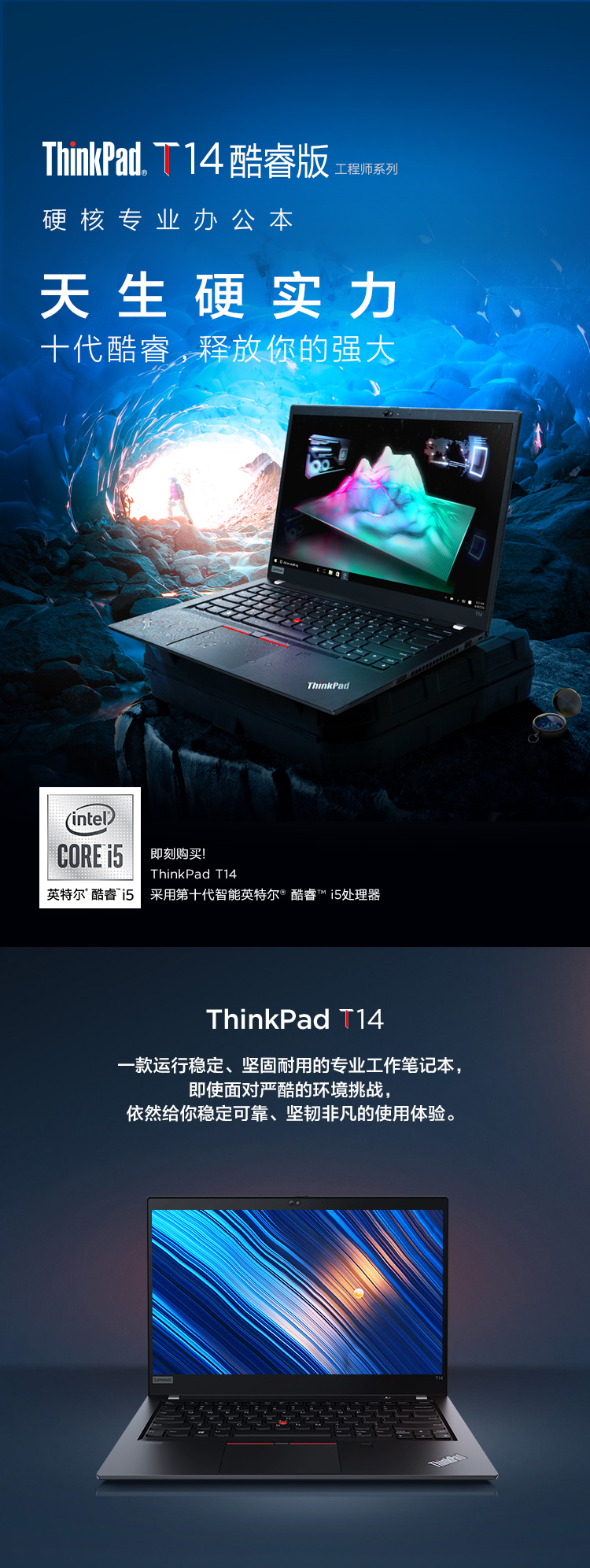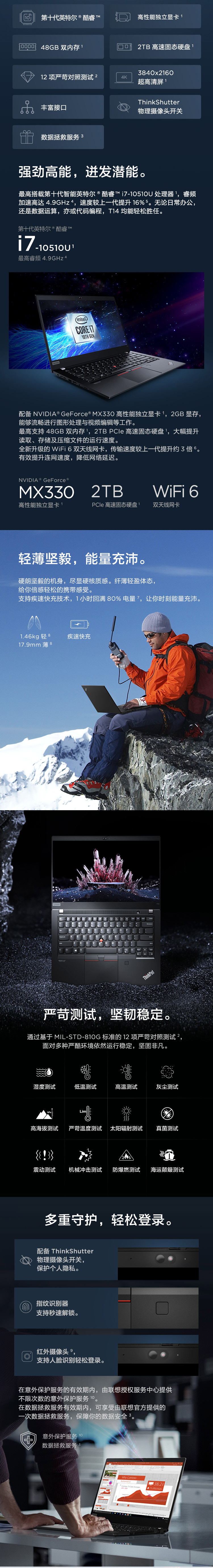 联想ThinkPad T14 14英寸商用轻薄笔记本电脑【i5-10210U 16G 512GSSD 2G独显 Win10H】