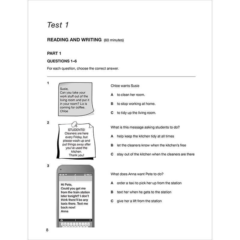 《剑桥通用五级考试KET官方真题(新题型)1(含答案和超详解析)》是剑桥通用五级考试中的KET考试(即Key English Test [KET],新的官方英文名称为A2 Key)的官方试题集,该考试于2020年改版,本书收录的试题为新版试题。具体包含以下内容: