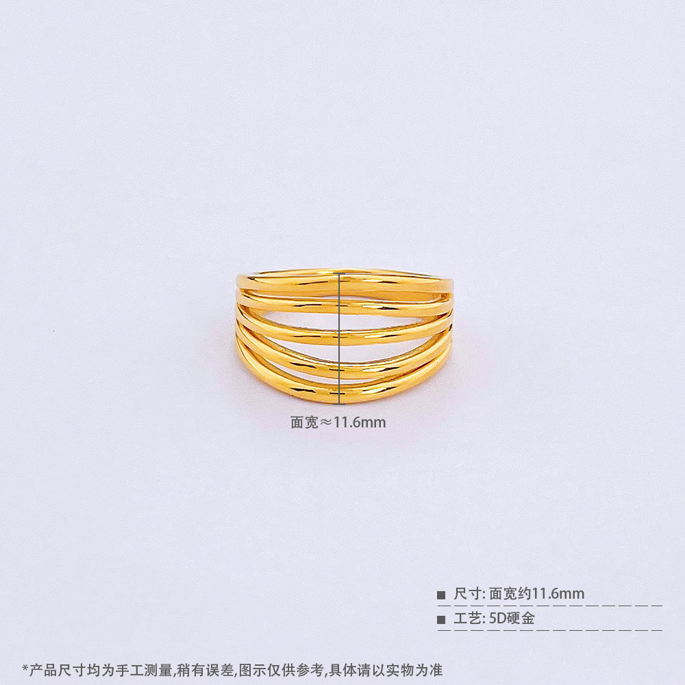 【限时克减150元】足金 【精品】无氰5D硬金固口戒指镂空绕线圈戒几何线条个性宽版固口圈戒(AR5DJZ00044)(预售产品下单后不退款不退货不换货不补差价)