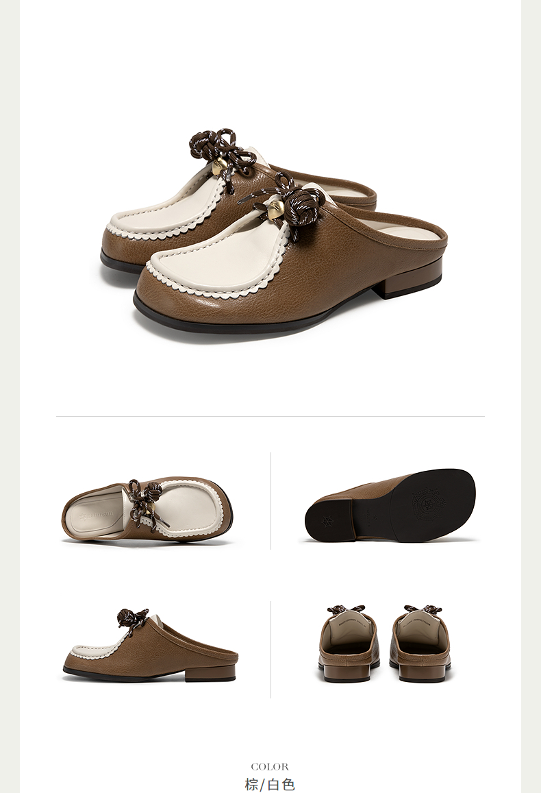 natursun复古包头拖女一脚蹬通勤外穿拖鞋平底勃肯鞋N25231209