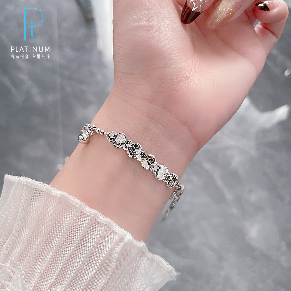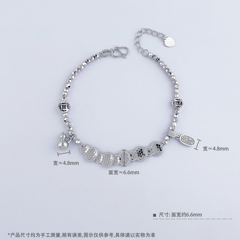 【限时8.8折】【线上铂金馆】PT950 #葫芦 #招财纳福 【国际铂金协会】铂金镂空鱼鳞葫芦葫芦吊饰蹦迪珠调节手链(内里线为铂金链)(BSL00265)预售产品下单后不退款不退货不换货不补差价)