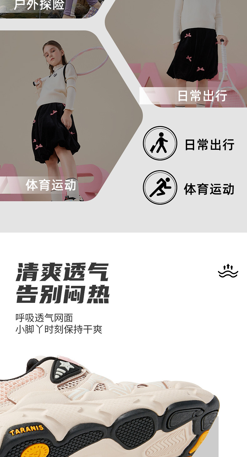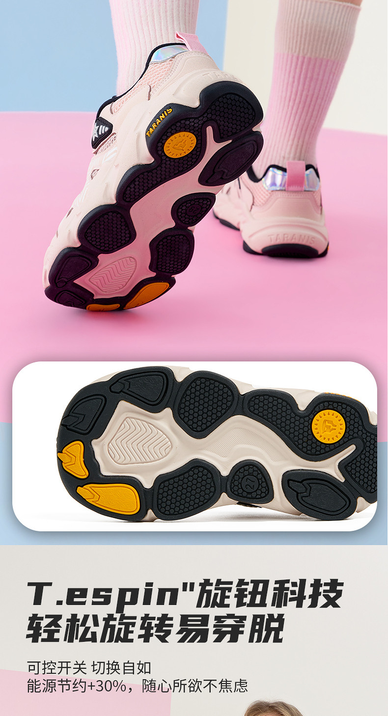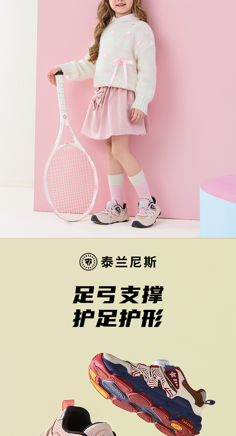 泰兰尼斯儿童运动鞋2026年春季新款女童跑步鞋时尚旋钮扣老爹鞋T01X6A8638