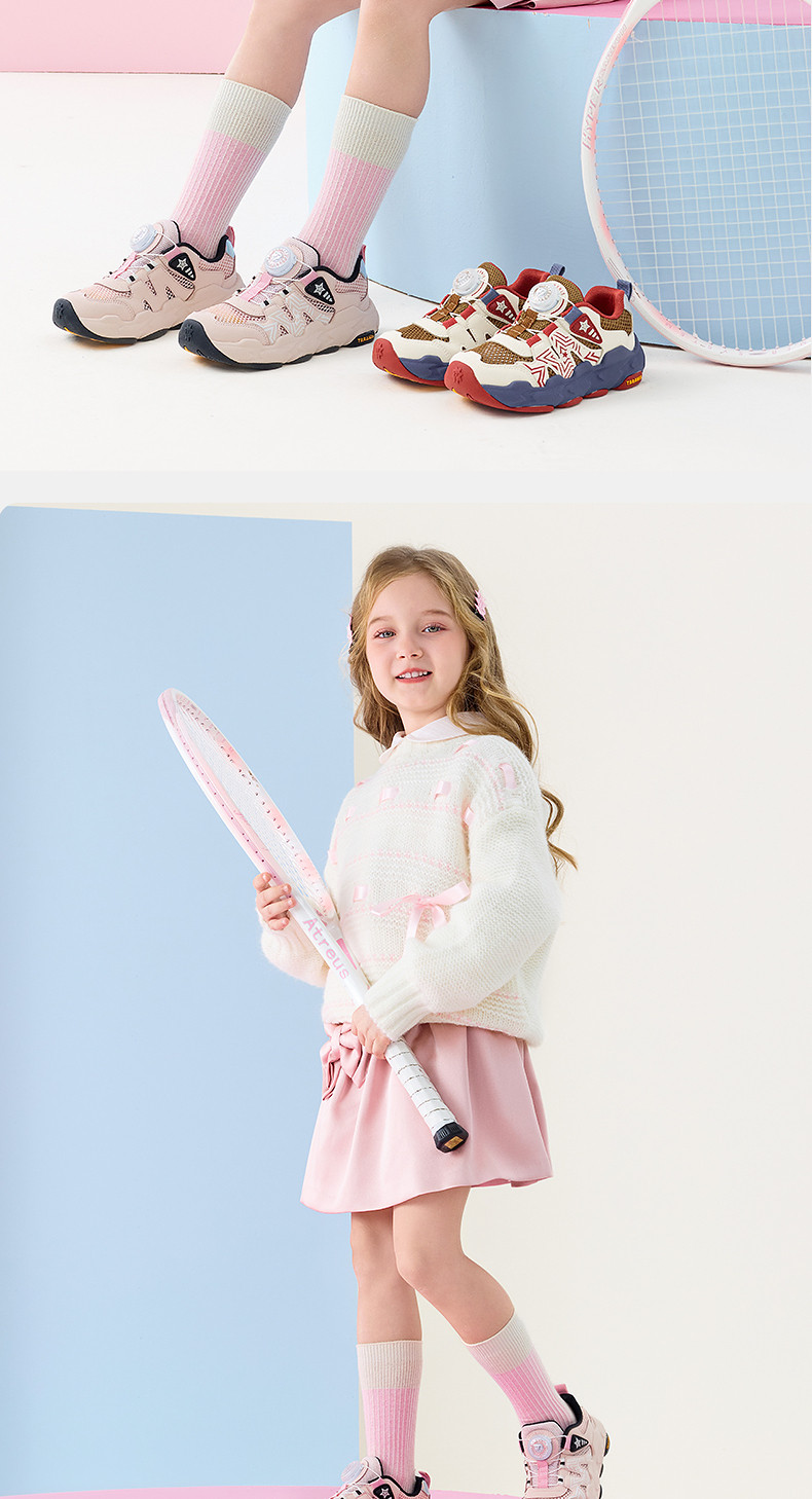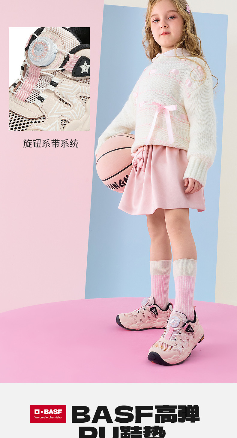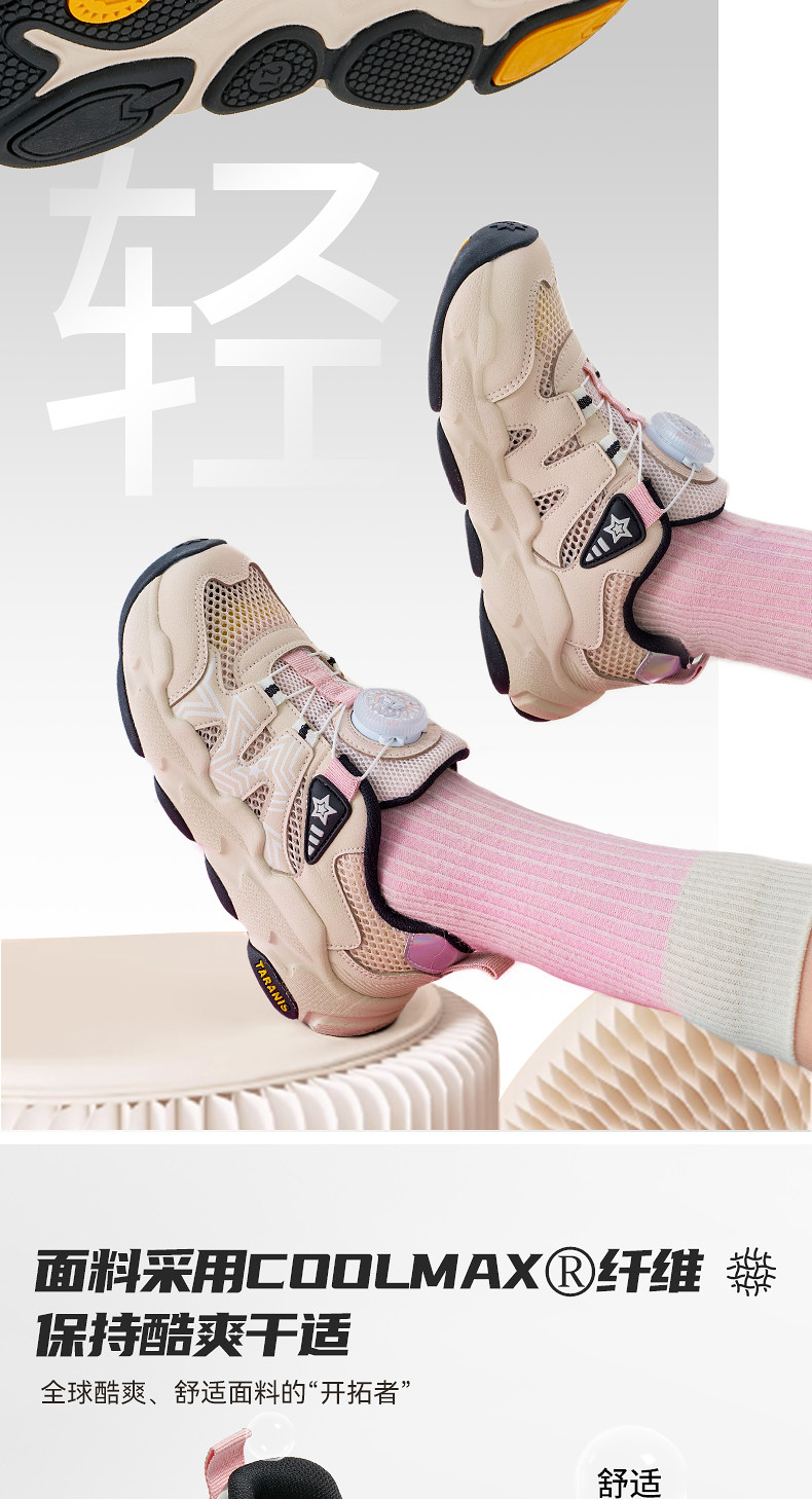 泰兰尼斯儿童运动鞋2026年春季新款女童跑步鞋时尚旋钮扣老爹鞋T01X6A8638
