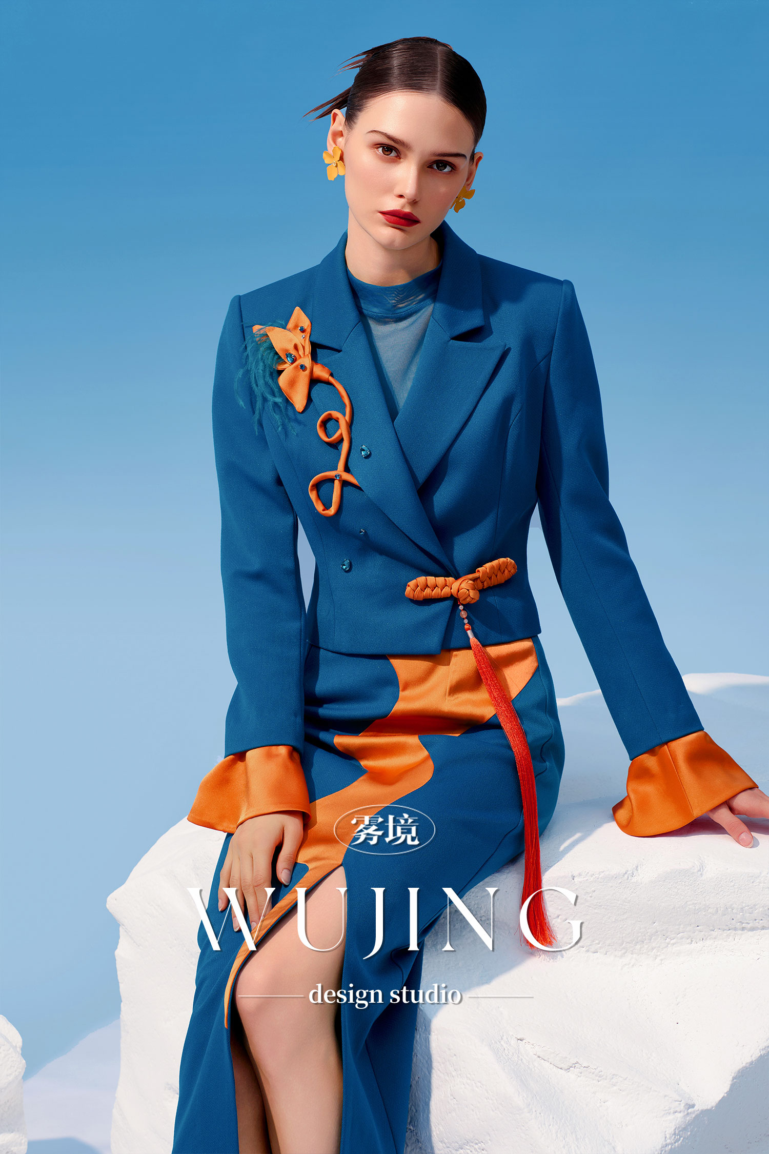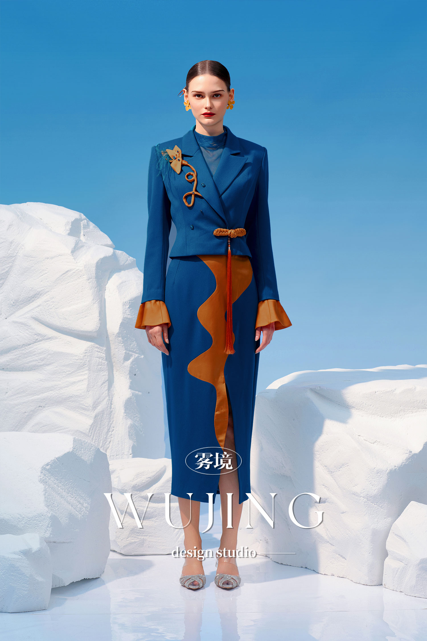 4202030 悠蓝碧玉 高级亮丝斜纹外套 雾境